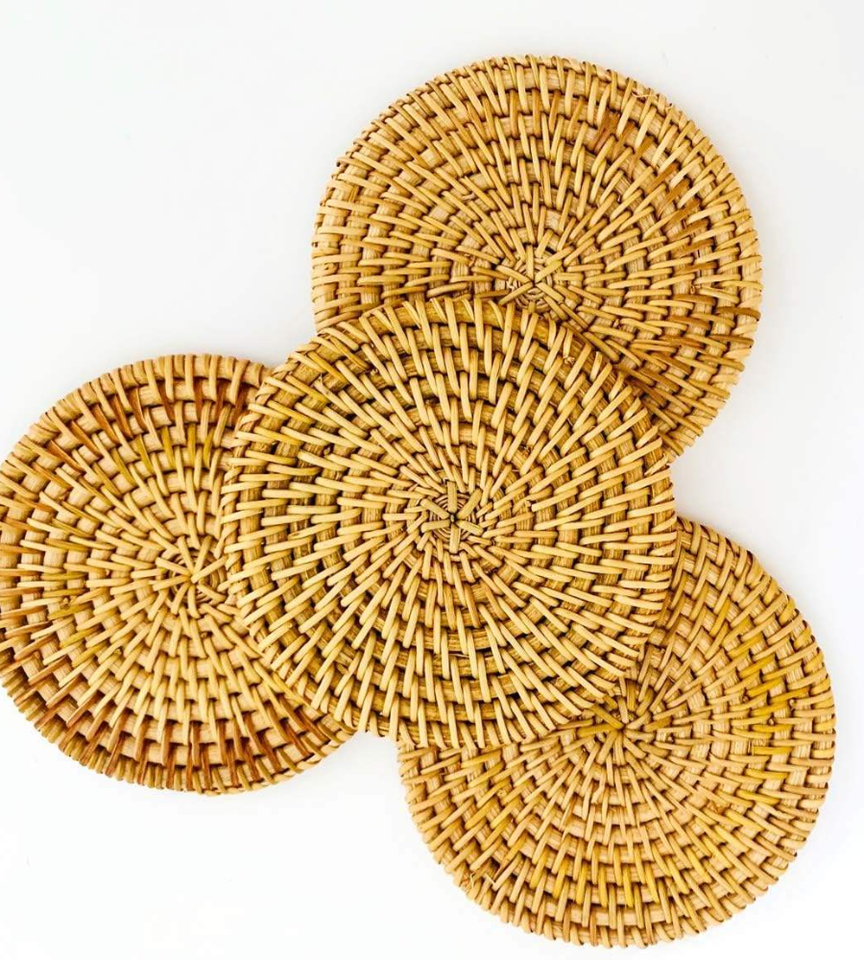 แผ่นรองแก้วหวายธรรมชาติ ทำมือ ทนความร้อน ดีไซน์สวยงาม เป็นมิตรกับสิ่งแวดล้อม ของตกแต่งโต๊ะอาหาร สำหรับบ้าน สำนักงาน ผลิตในเวียดนาม