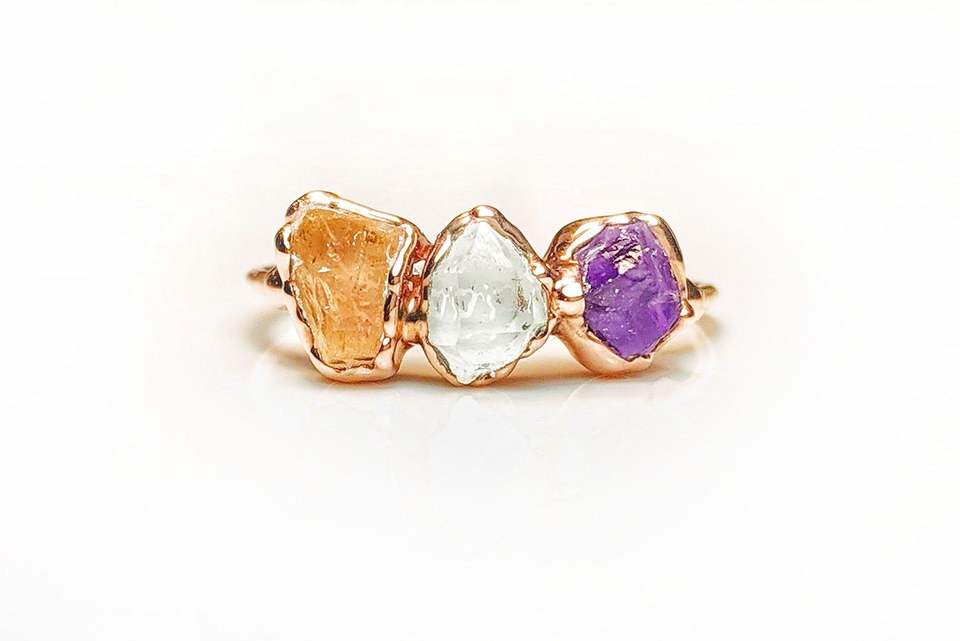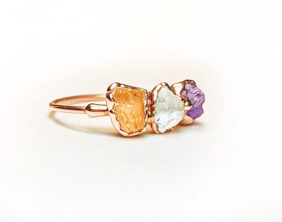 แหวนควอตซ์อเมทิสต์คริสตัลพลอยสีเหลืองดิบจากธรรมชาติแหวนอเมทิสต์ชุบทองแบบดั้งเดิมเครื่องประดับแหวนมินิมอล