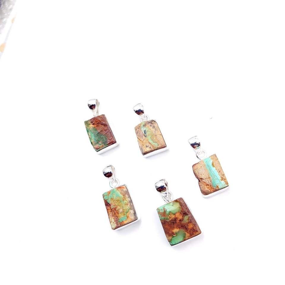 สร้อยคอจี้เงินแท้สีเทอร์ควอยซ์พลอยทองแดงธรรมชาติจี้เทอร์ควอยซ์สีฟ้าคร่าว