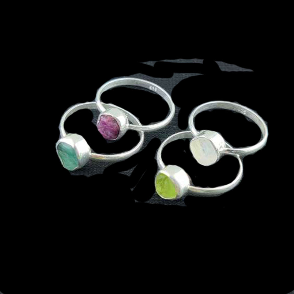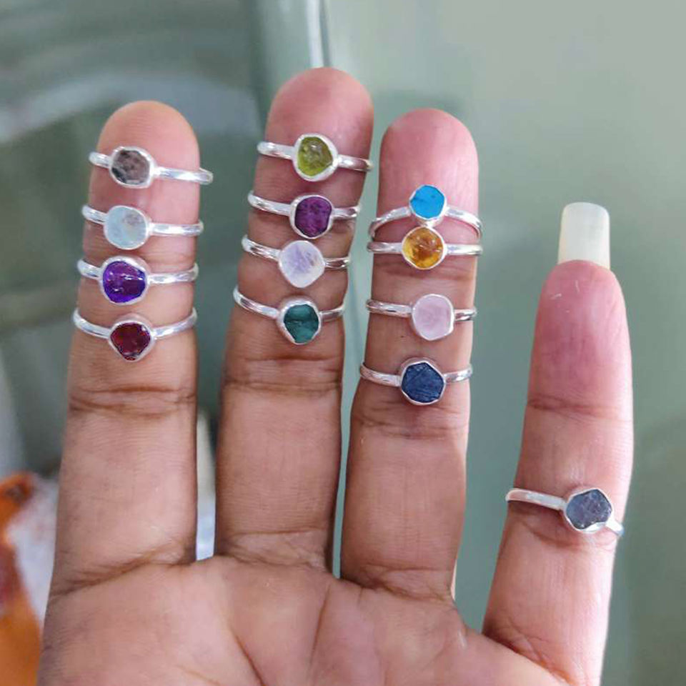 แหวนเงินสเตอร์ลิงพลอยดิบธรรมชาติชุดรวบรวมแหวนหิน-เครื่องประดับที่ดีสำหรับผู้หญิงแหวนพลอยหยาบ