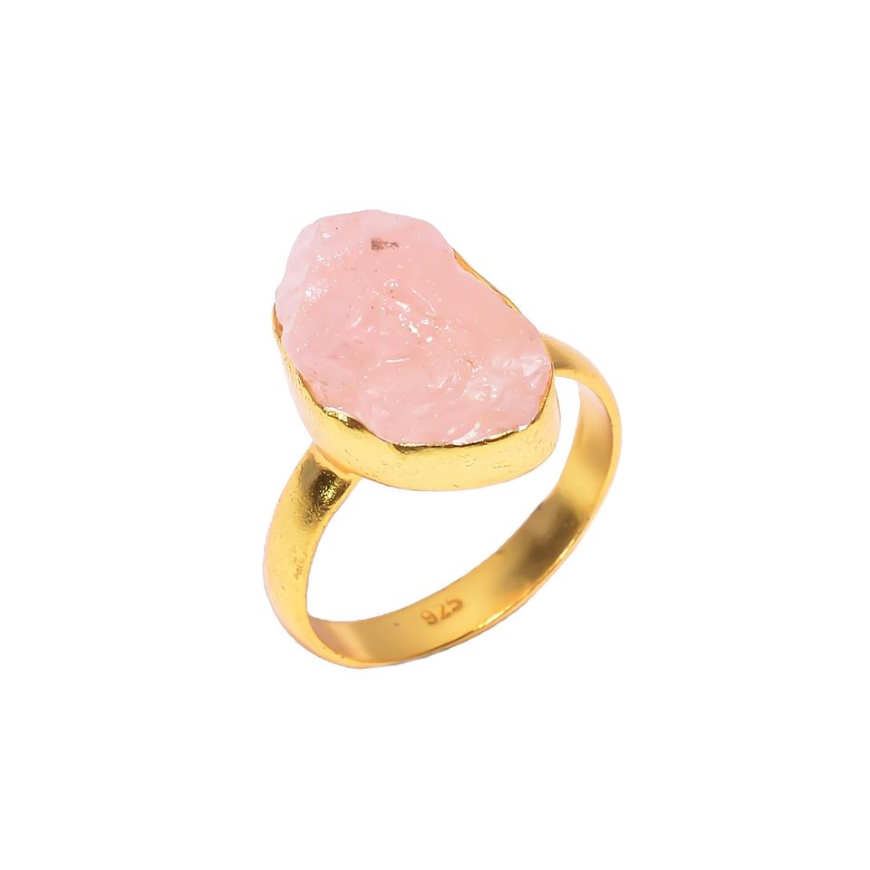 ธรรมชาติดิบโรสควอตซ์แหวนชุบทอง925แข็งเครื่องประดับเงินสเตอร์ลิงทำด้วยมือปรับแหวนเงินผู้ค้าส่งและซัพพลายเออร์