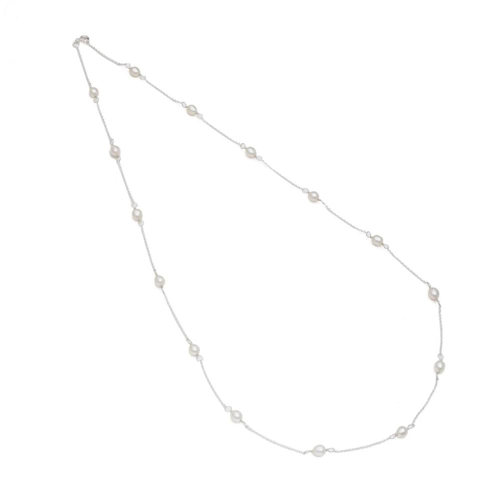 สร้อยคอมุกน้ำจืดแท้ เกรด AAA สีขาวครีม ขนาด 18 นิ้ว เงินแท้ 925 ดีไซน์ทันสมัย กำลังเป็นที่นิยม ขายดี