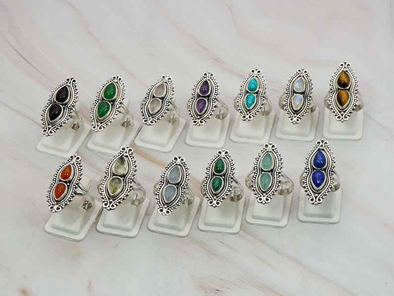แหวนอัญมณีธรรมชาติแท้หลายแบบ925สเตอร์ลิงทำด้วยมือแหวนเครื่องประดับปรับแต่งได้ตามต้องการ