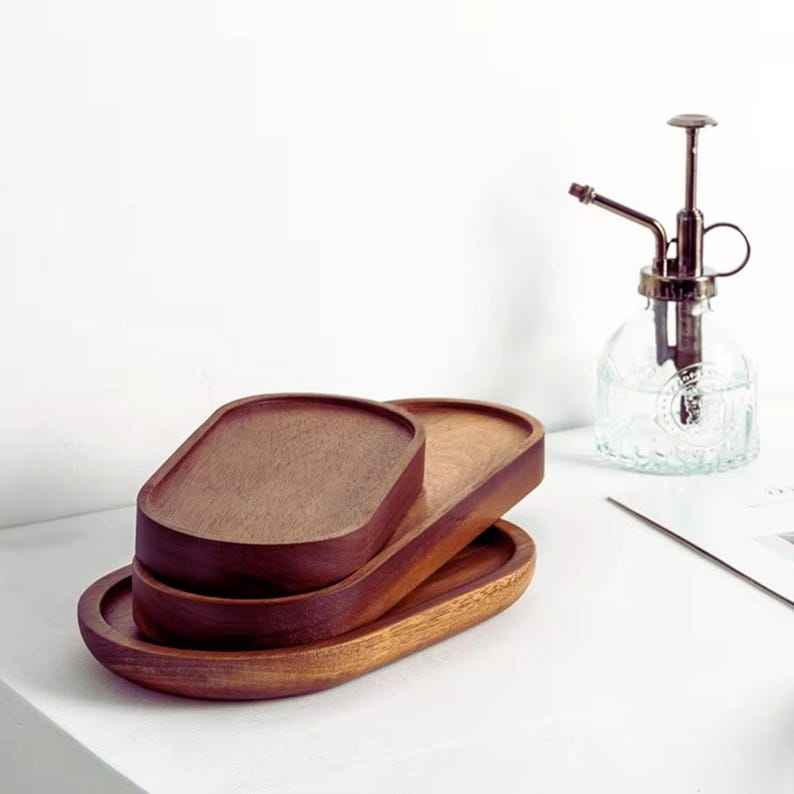 ถาดรองจานใส่ขนมและผลไม้สำหรับตกแต่งบนโต๊ะอาหารทรงสี่เหลี่ยมผืนผ้าทำจากไม้เนื้อแข็งแท้ธรรมชาติถาดเสิร์ฟกาแฟถาดเสิร์ฟสำหรับคาเฟ่