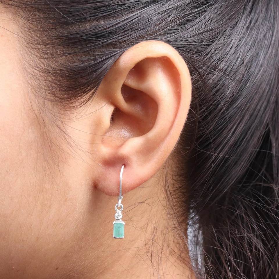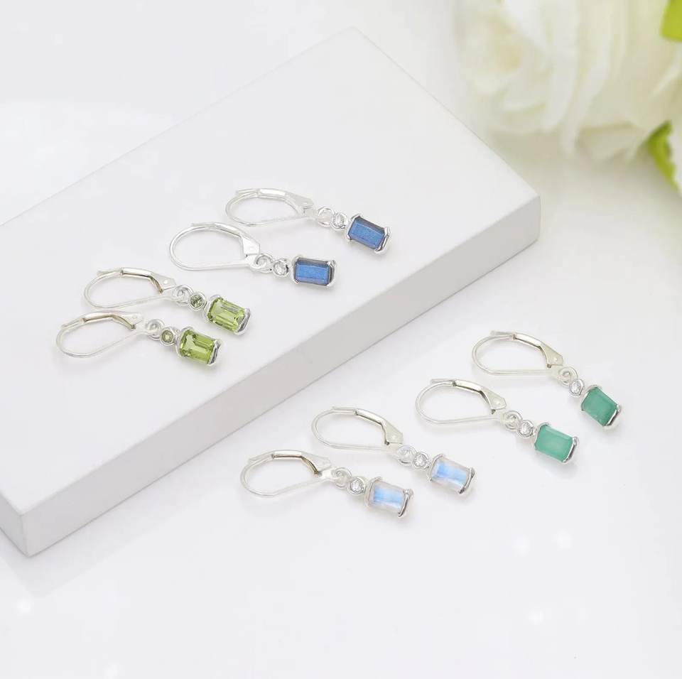 ต่างหูห้อยเพอริดอททรงสี่เหลี่ยมผืนผ้าธรรมชาติ925ก้านเงินสเตอร์ลิงด้านหลังดีไซน์แฮนด์เมดเครื่องประดับหินวันเกิด