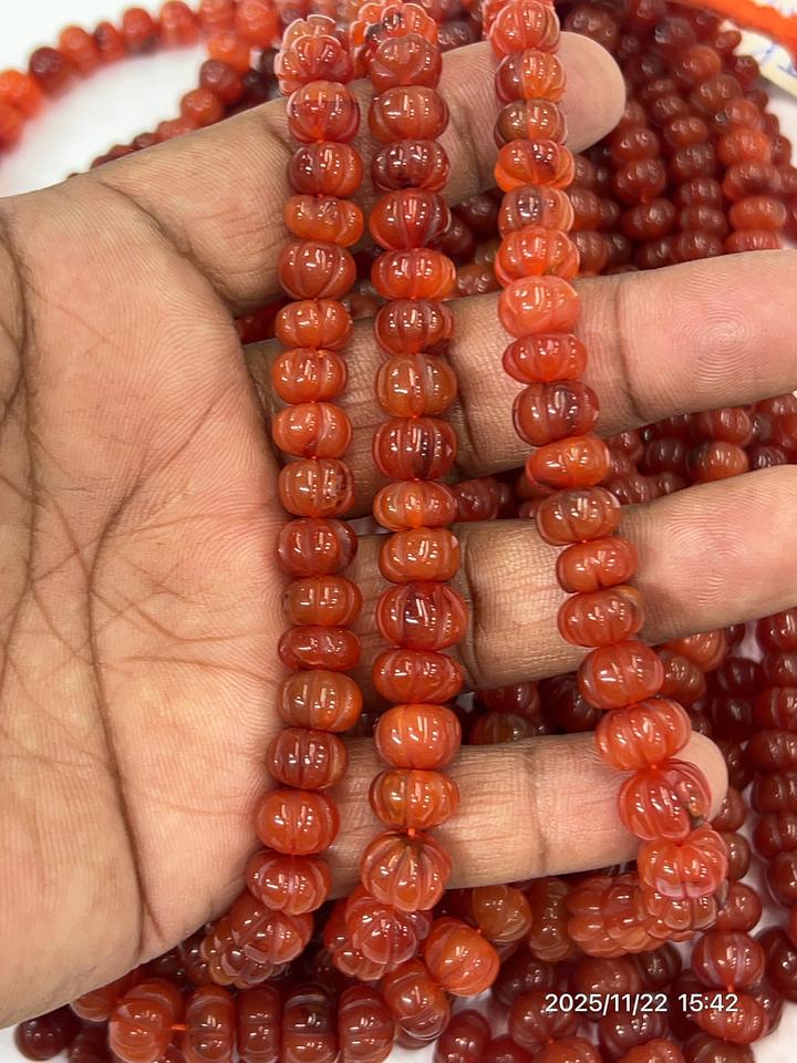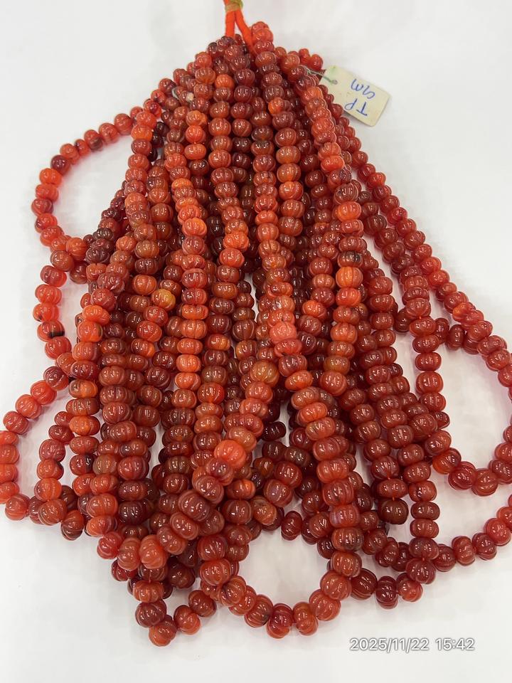 ลูกปัดพลอยคาร์เนเลียนสีแดงธรรมชาติทรงฟักทอง ขนาด 17 นิ้ว ขนาดเม็ด 8-10 มม.