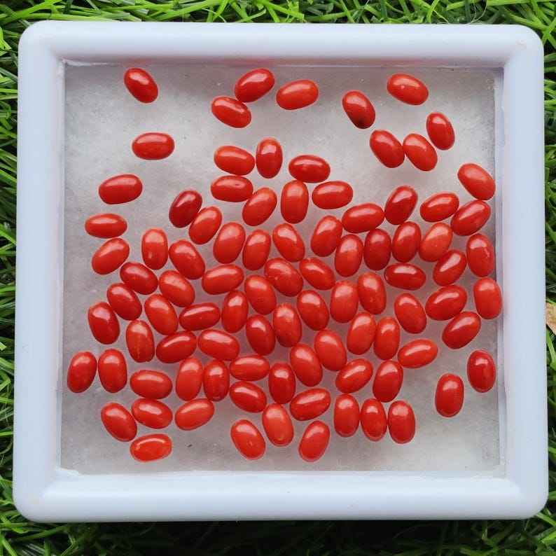 พลอยปะการังสีแดงธรรมชาติทรงรีแบบคาโบชอง ขนาดมาตรฐาน ไม่ผ่านการบำบัด รับรองคุณภาพ ล็อตเม็ดพลอยสำหรับทำเครื่องประดับ