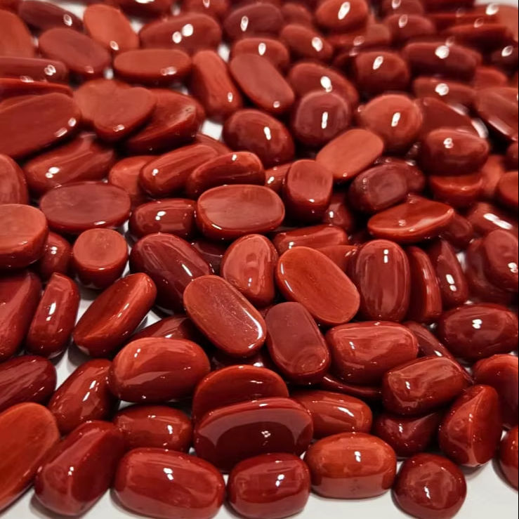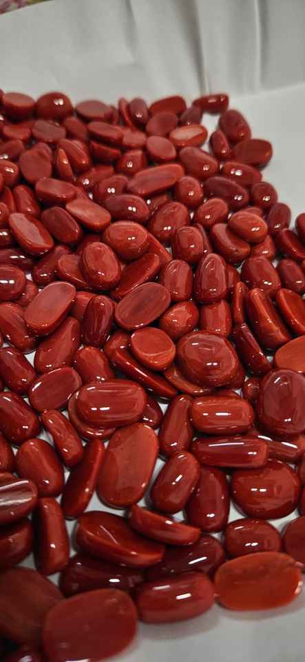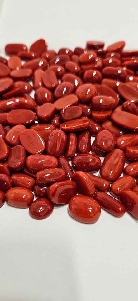 พลอยปะการังแดงธรรมชาติทรงรีสำหรับทำเครื่องประดับ ขนาดและน้ำหนักคละแบบ จากราชสถาน