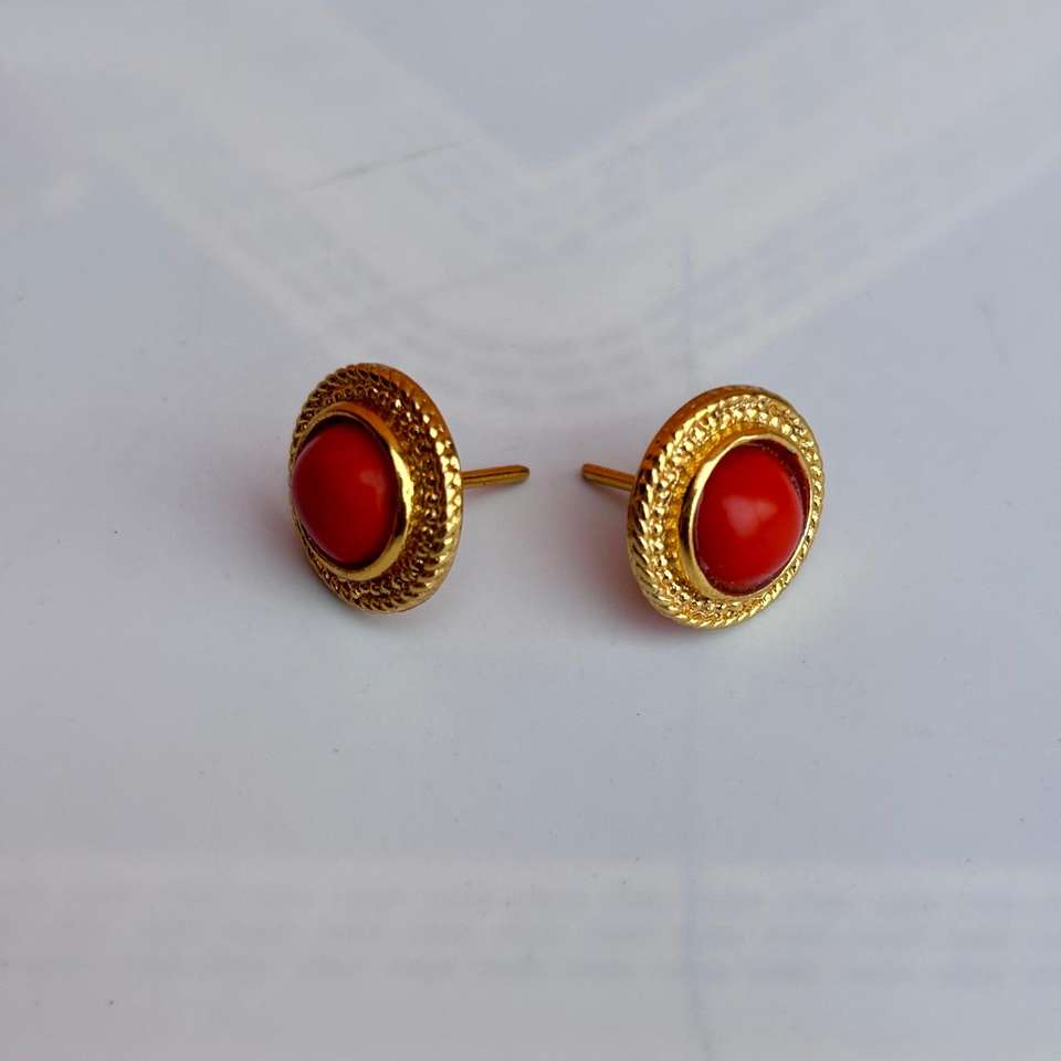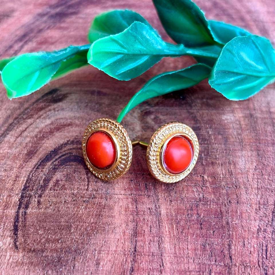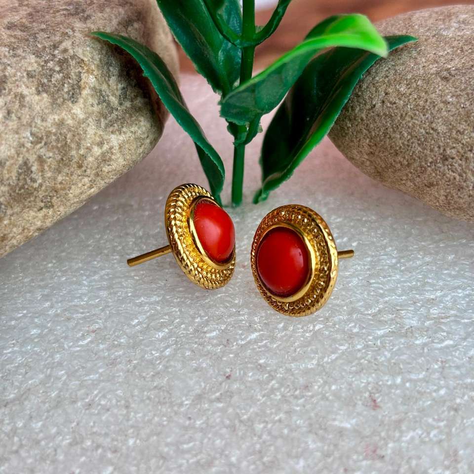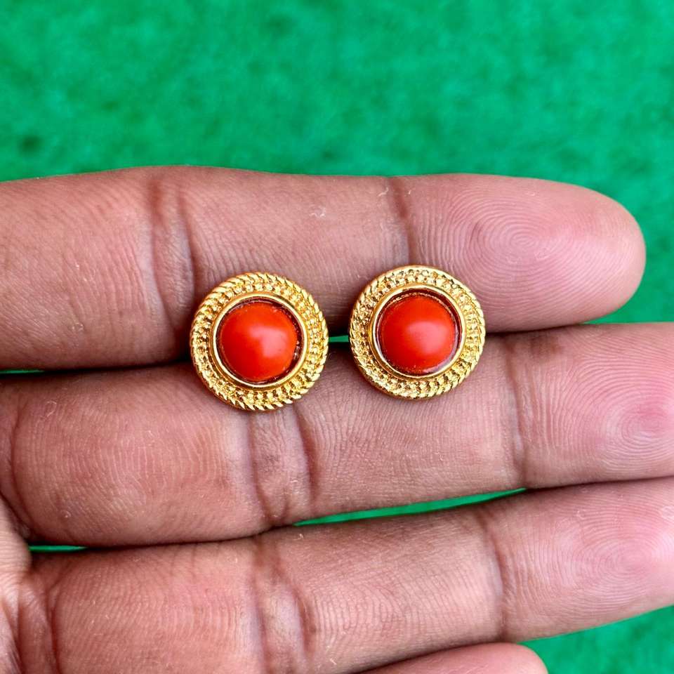 ต่างหูปะการังสีแดงธรรมชาติทำด้วยมือเครื่องประดับอัญมณีสำหรับผู้หญิงอัญมณีแท้เครื่องประดับที่เรียบง่าย