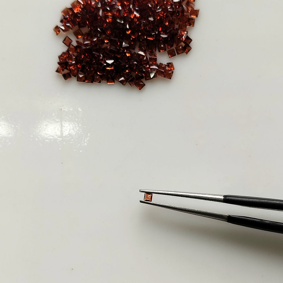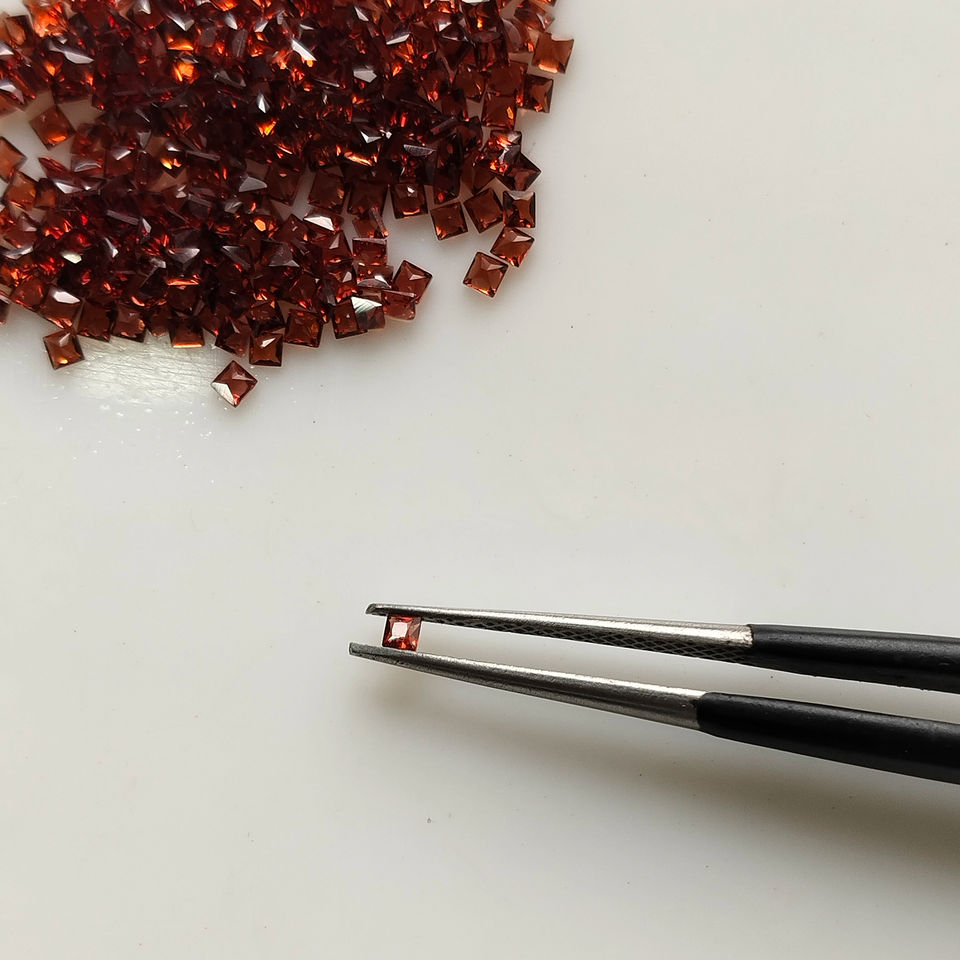 โกเมนสีแดงธรรมชาติ 1.5 มม. ทรงสี่เหลี่ยมเจ้าหญิงคัท คุณภาพดีที่สุด พลอยเม็ดเดี่ยวสำหรับทำเครื่องประดับ