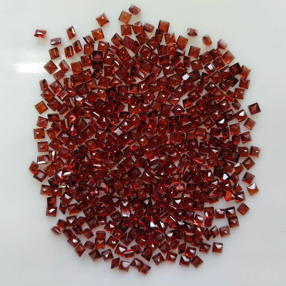 พลอยโกเมนสีแดงธรรมชาติ 2.75 มม. ทรงสี่เหลี่ยมเจียระไนแบบสเต็ปคัต คุณภาพดีที่สุด สำหรับทำเครื่องประดับ