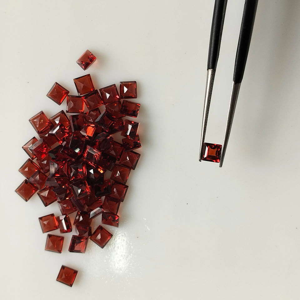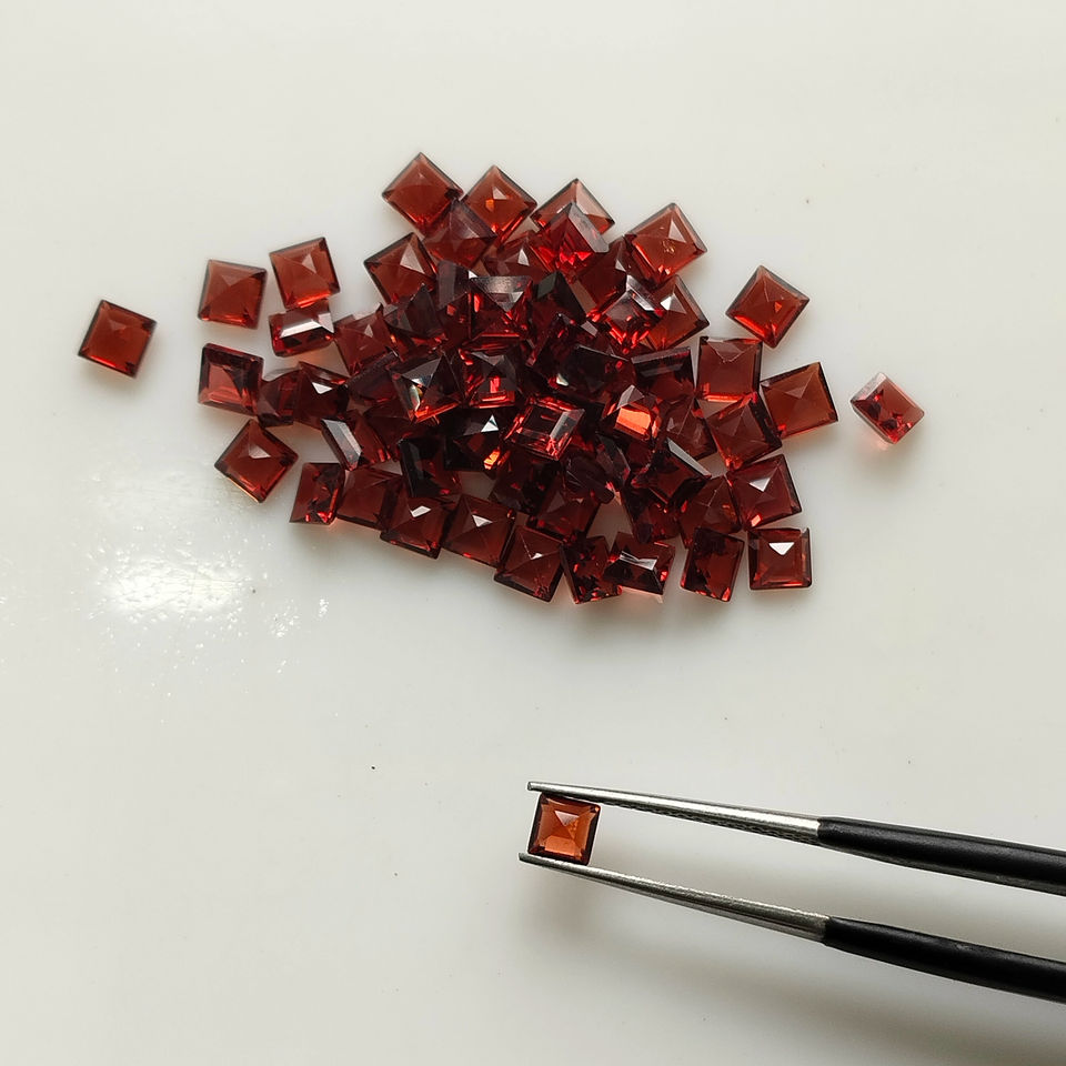 พลอยโกเมนสีแดงธรรมชาติ ขนาด 3 มม. ทรงเหลี่ยมแบบสเต็ปคัต คุณภาพดีที่สุด สำหรับทำเครื่องประดับ