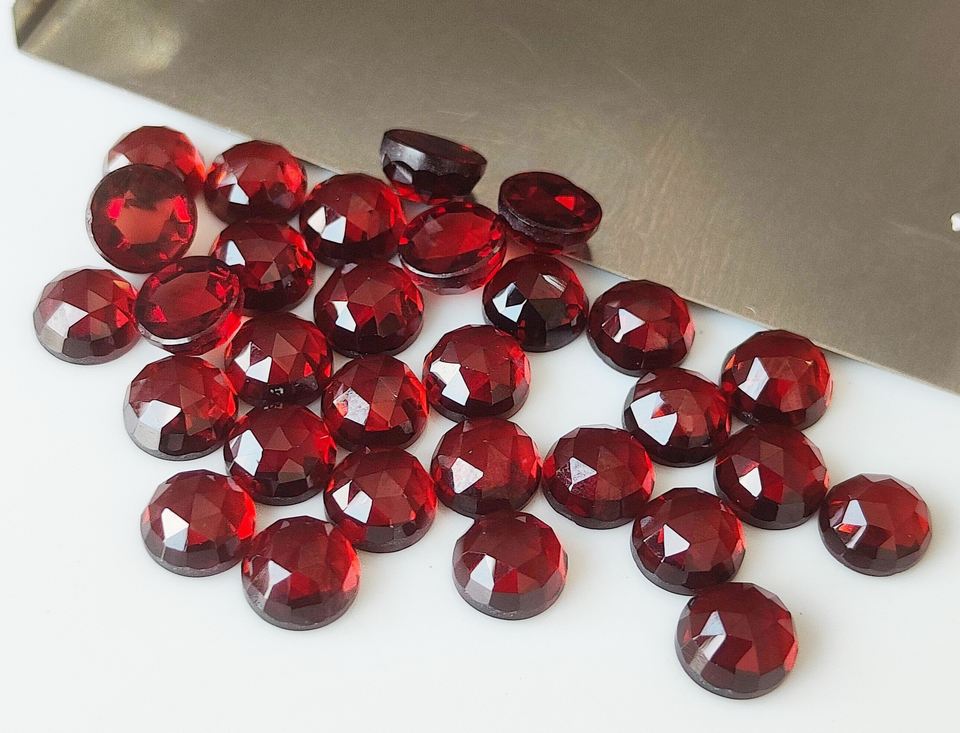 คุณภาพสูงทำด้วยมือโกเมนสีแดงธรรมชาติ3มม.-6มม. ตัดดอกกุหลาบกลมแบนอัญมณีหลวมสีเล่น/ไฟสำหรับการทำเครื่องประดับ