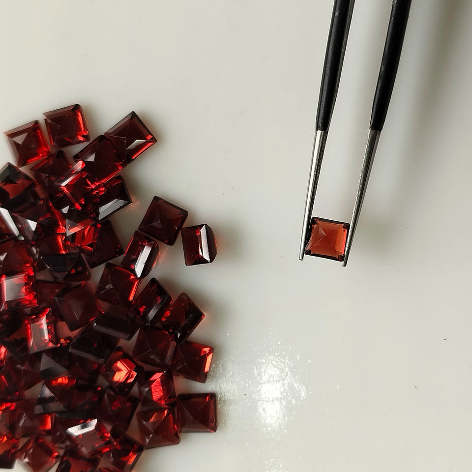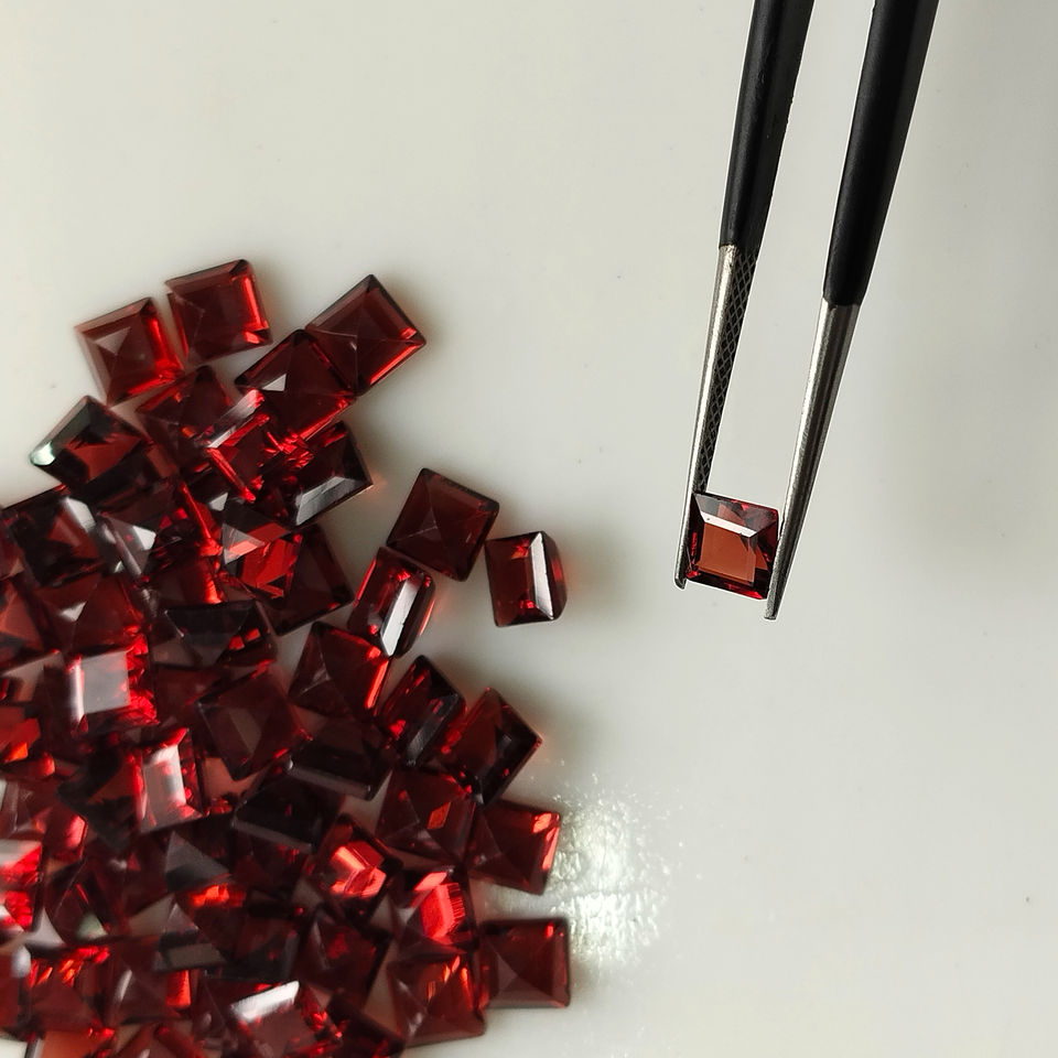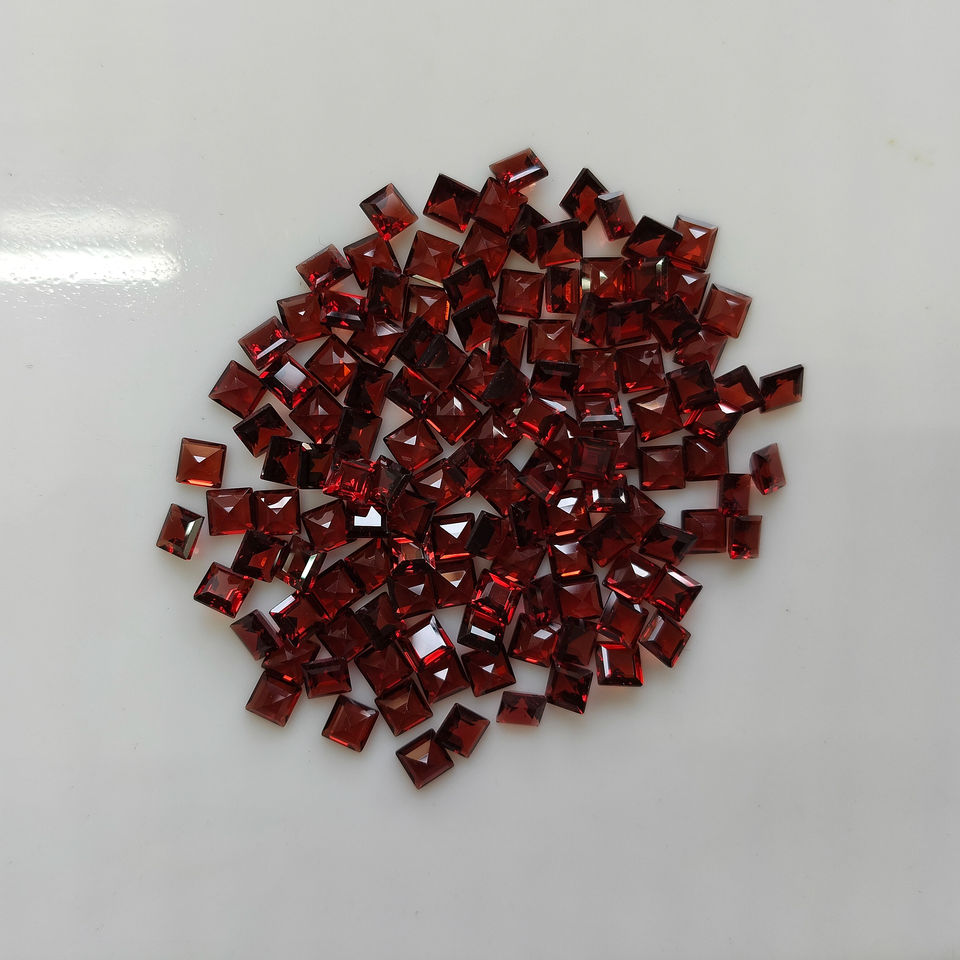 โกเมนสีแดงธรรมชาติ 4.5 มม. ทรงสี่เหลี่ยมเจียระไนแบบสเต็ปคัท คุณภาพดีที่สุด พลอยเม็ดเดี่ยวสำหรับทำเครื่องประดับ