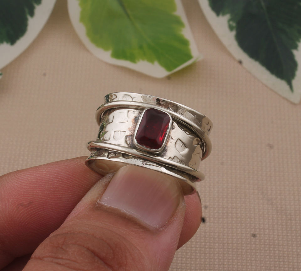 แหวนเงินแท้ 925 ประดับพลอยโกเมนสีแดงธรรมชาติทรงสี่เหลี่ยม งานแฮนด์เมด สำหรับผู้หญิง เหมาะสำหรับงานแต่งงาน เครื่องประดับแฟชั่น ขายส่ง