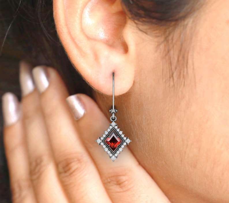 Product name:Red Garnet Gemstone Kite Earrings