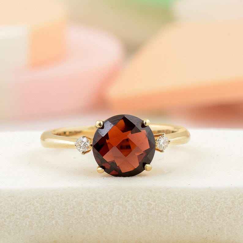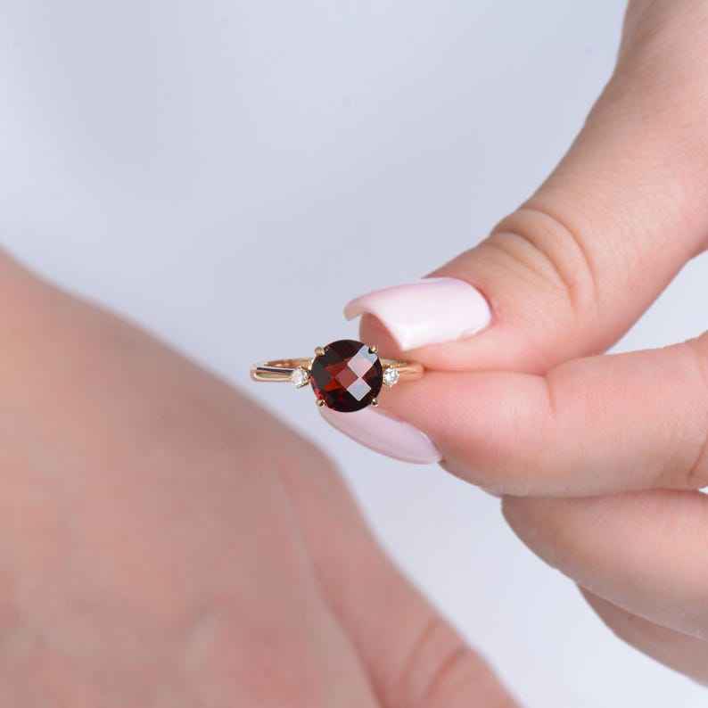 Natural Red Garnet Ring May Birthstone