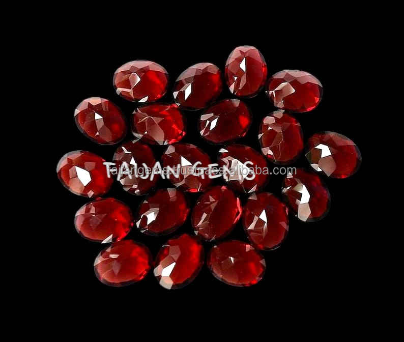 โกเมนสีแดงธรรมชาติทรงรีเหลี่ยมเพชรพลอยหลวมกึ่งมีค่า
