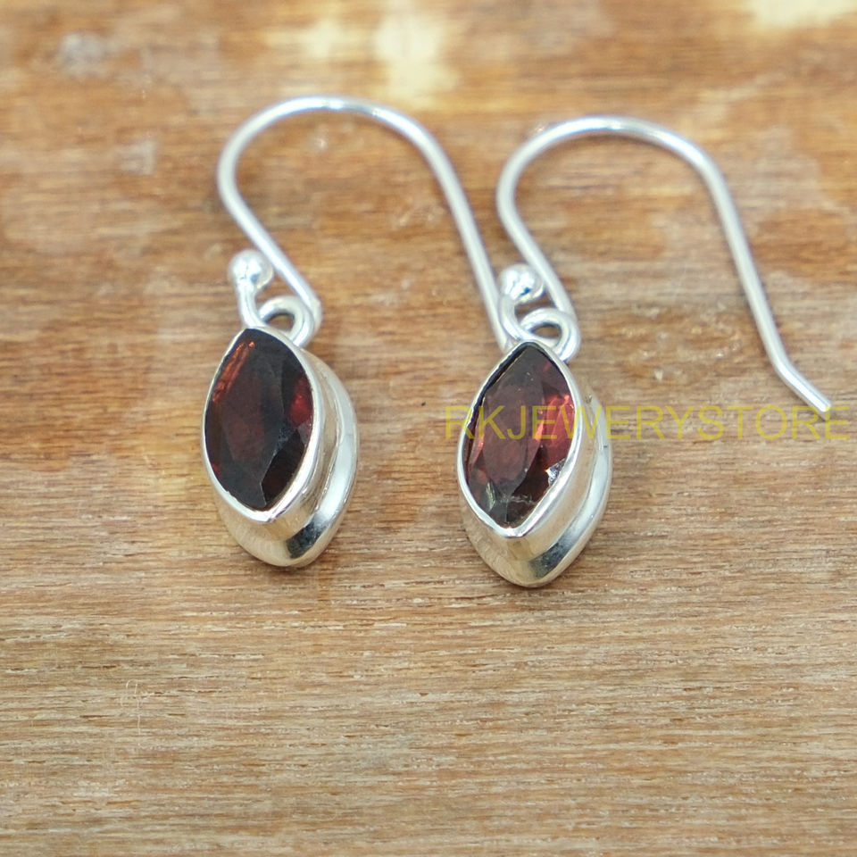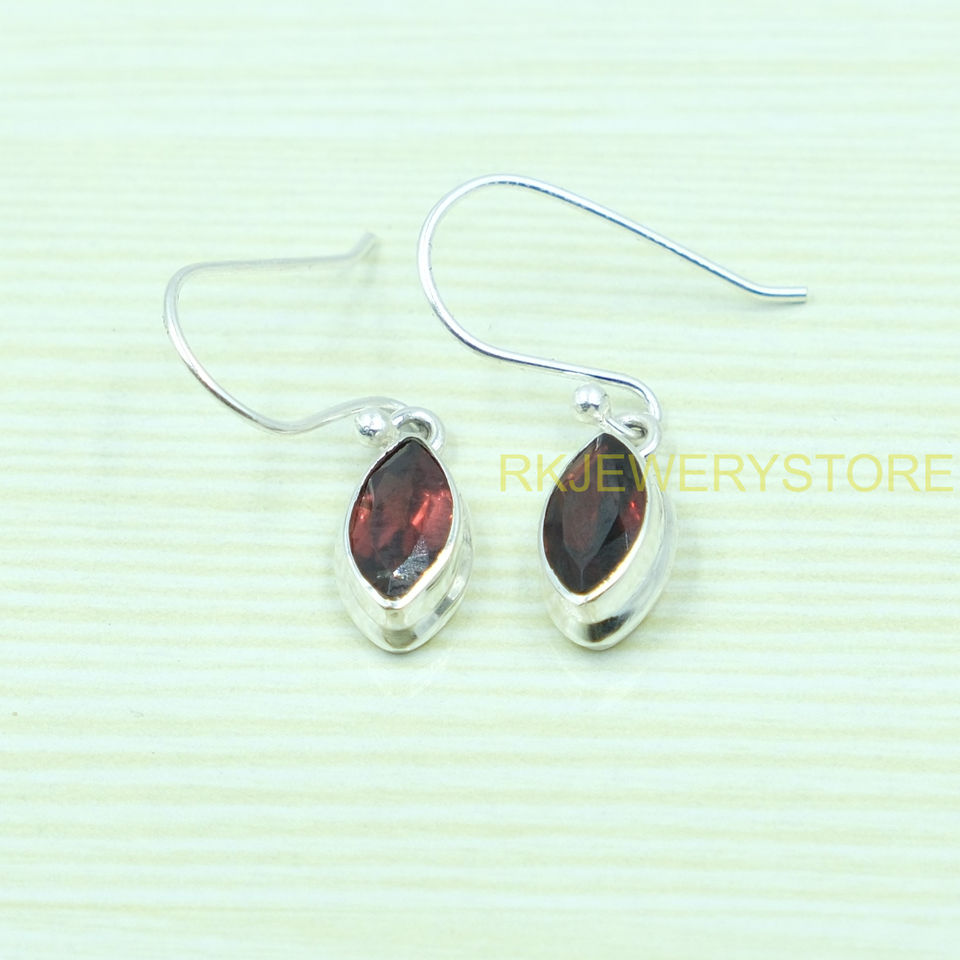 ต่างหูพลอยโกเมนสีแดงธรรมชาติ ต่างหูพลอยเจียระไน เงินแท้ 925 ต่างหูห้อยทำมือ เครื่องประดับพลอยโกเมนสำหรับภรรยา