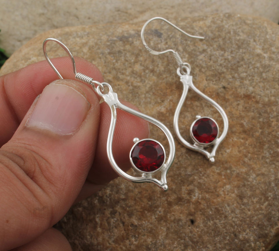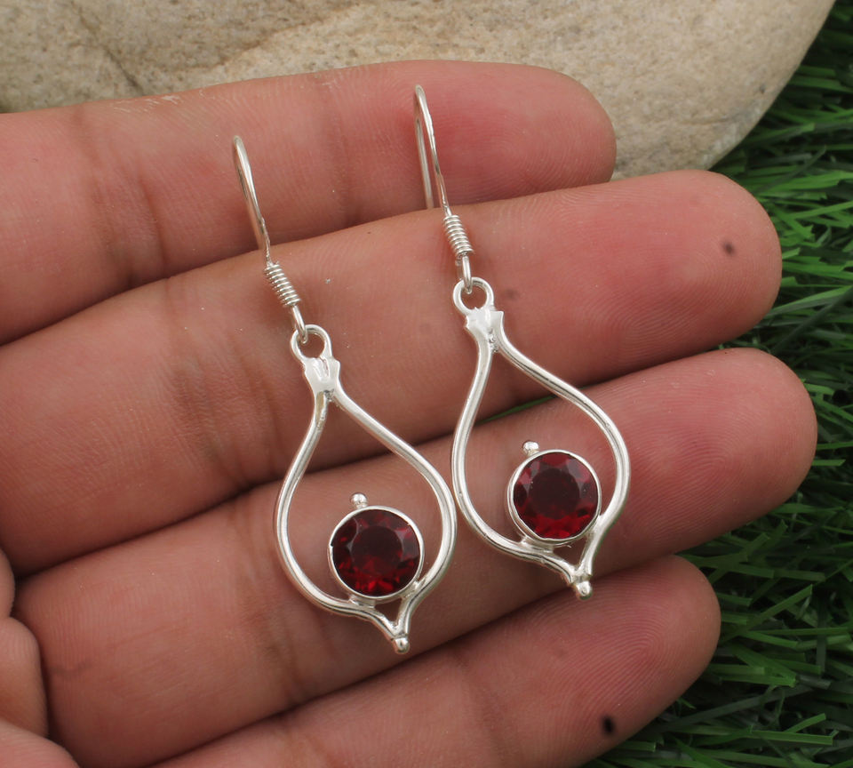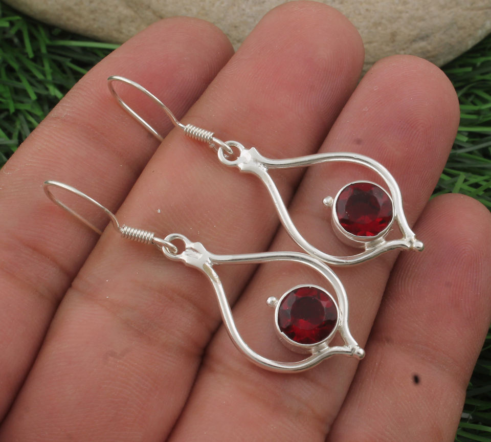 ต่างหูห้อยประดับพลอยโกเมนสีแดงธรรมชาติ เงินแท้ 925 ชุบเงิน งานแฮนด์เมด สไตล์วินเทจสุดหรู เหมาะเป็นของขวัญสำหรับงานแต่งงาน