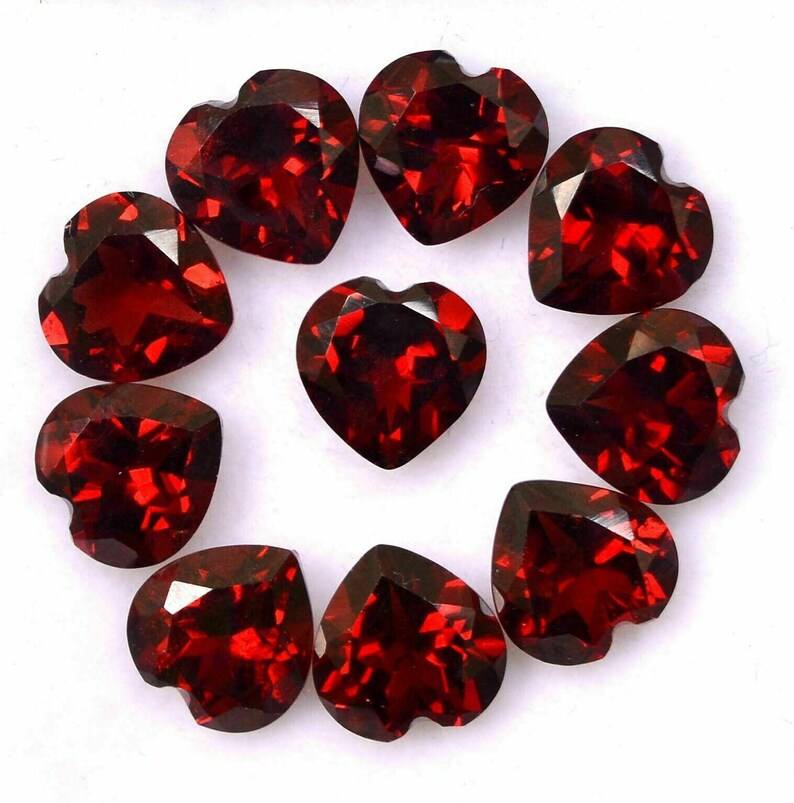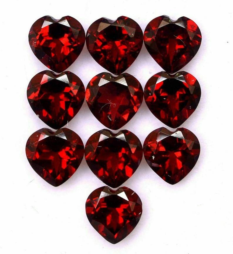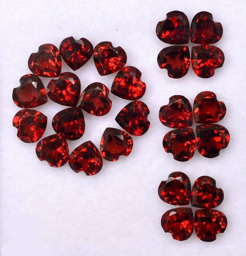 พลอยโกเมนสีแดงธรรมชาติทรงหัวใจเจียระไนแบบเหลี่ยม ขนาดมาตรฐาน ได้รับการรับรอง ไม่ผ่านการปรับแต่ง พร้อมสำหรับการฝังในเครื่องประดับ