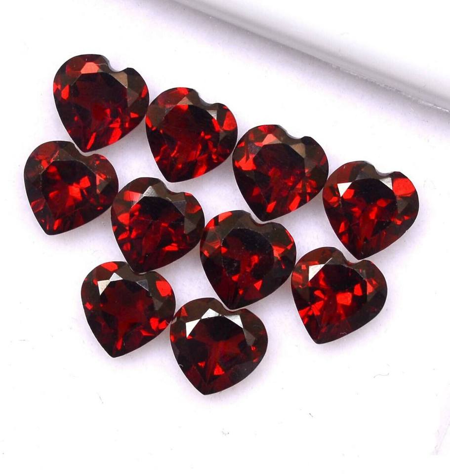พลอยโกเมนสีแดงธรรมชาติทรงหัวใจเจียระไนแบบเหลี่ยม พร้อมใบรับรอง พร้อมเคลือบแว็กซ์/น้ำมัน สำหรับทำเครื่องประดับ สีและรูปทรงพิเศษแบบตาแมว