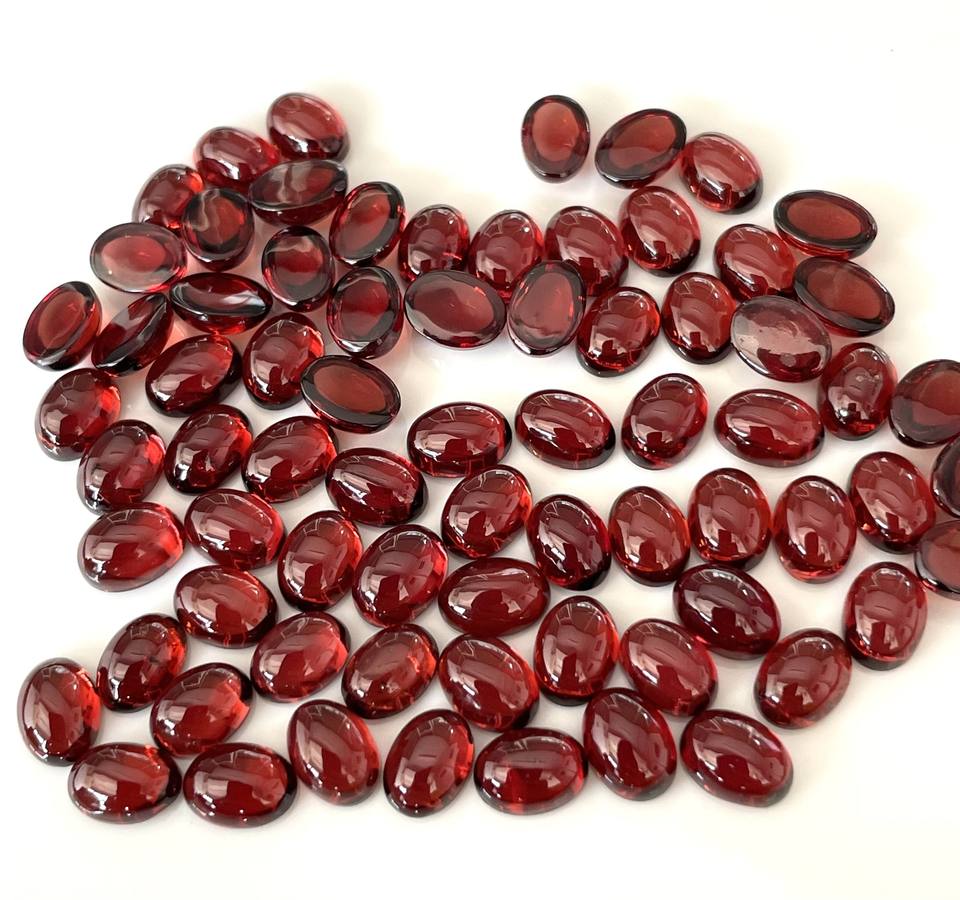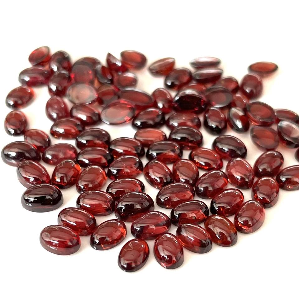 โกเมนสีแดงธรรมชาติทรงรีขนาด3X5มม. หลังแบน-พลอยโกเมนแบบหลวม