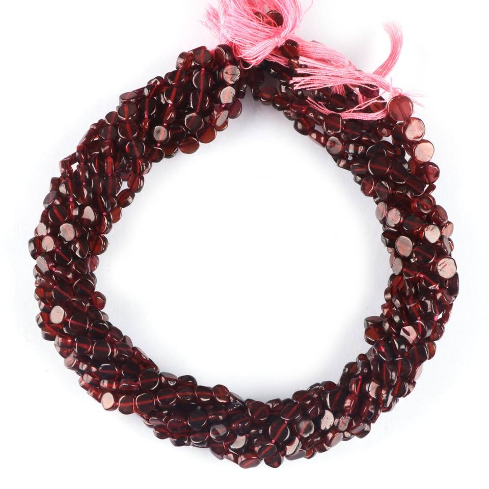 โกเมนสีแดงธรรมชาติรูปทรงเหรียญเรียบลูกปัดอัญมณีหลวมลูกปัดหลวมหินโกเมนขนาด5-6มม. สำหรับทำเครื่องประดับในราคาจำนวนมาก