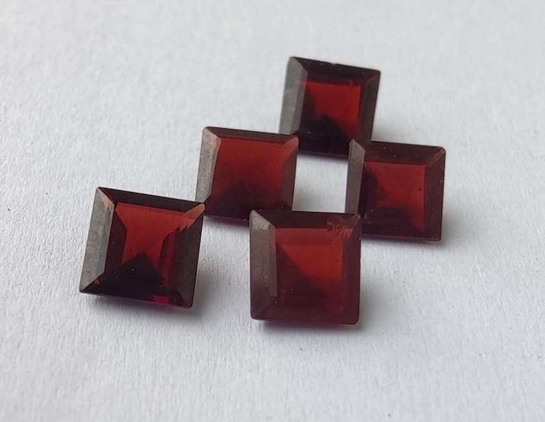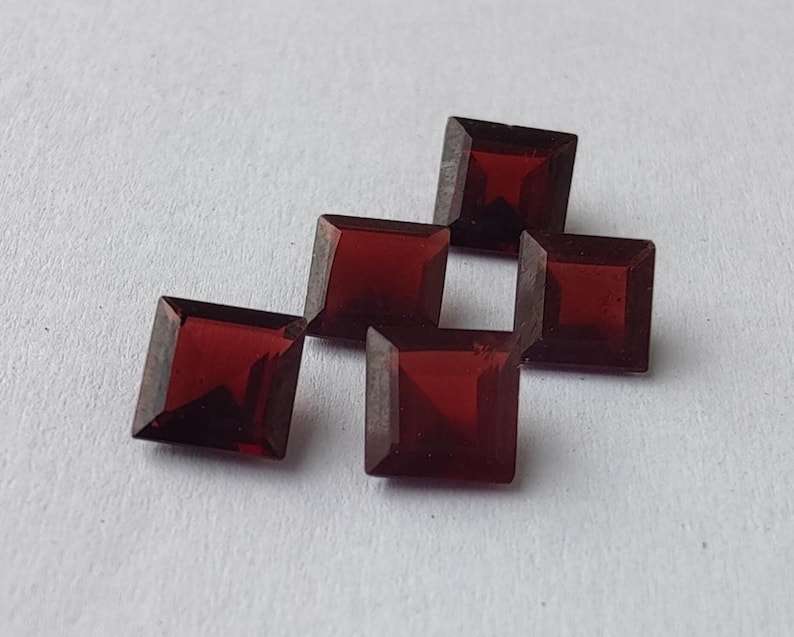 พลอยโกเมนสีแดงธรรมชาติทรงสี่เหลี่ยมเจียระไนแบบเหลี่ยมเพชรพลอย ขนาดมาตรฐานสำหรับทำเครื่องประดับ
