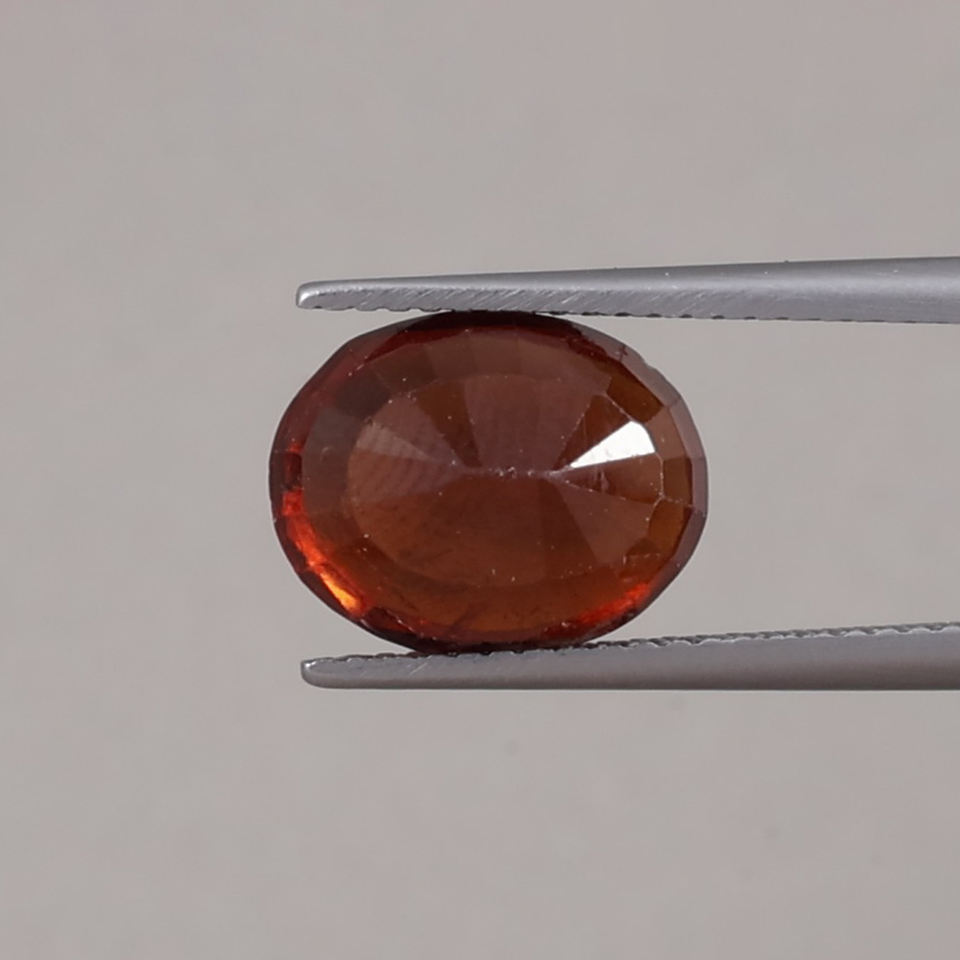 พลอยเฮสโซไนต์สีแดงธรรมชาติทรงรี 6.57 กะรัต ขนาด 12x9.5 มม. สีอ่อน | อัญมณีเคลือบแว็กซ์/น้ำมันคุณภาพเยี่ยม ได้รับการรับรองจาก IGI
