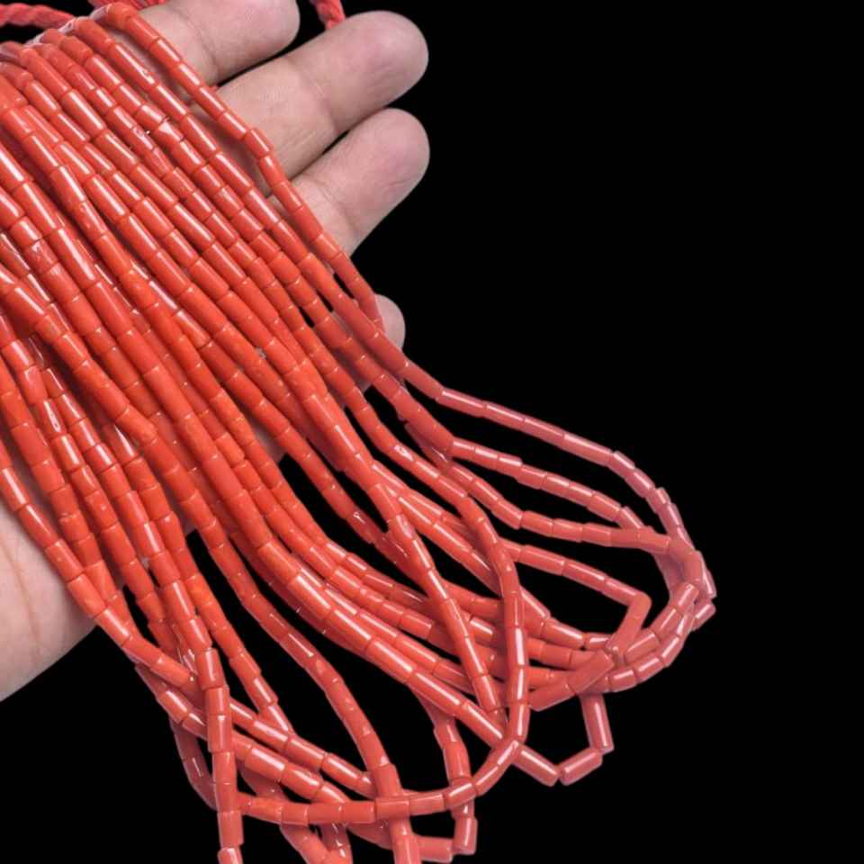 ลูกปัดท่อท่อคอรัลอิตาลีสีแดงธรรมชาติพลอยเรียบสำหรับทำเครื่องประดับขายส่งราคาโรงงานพร้อมส่ง