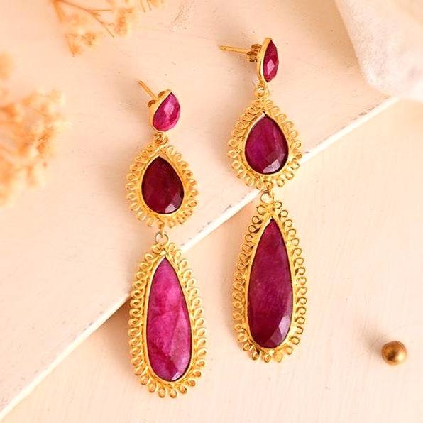 ชื่อผลิตภัณฑ์:ต่างหูประดับอัญมณีสีแดงหยกธรรมชาติ