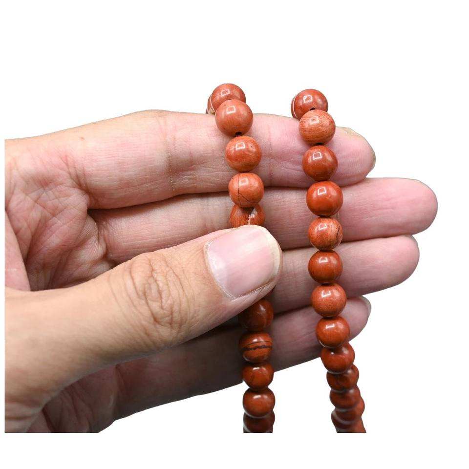 ลูกประคำหินแดงธรรมชาติ 108 เม็ด สร้อยคอมาลาแบบรักษ์โลก ทำด้วยมือ ถักด้วยมือ สำหรับโยคะ ทำสมาธิ คริสตัลบำบัด พลังหินบำบัด