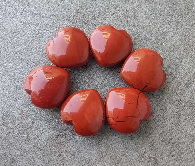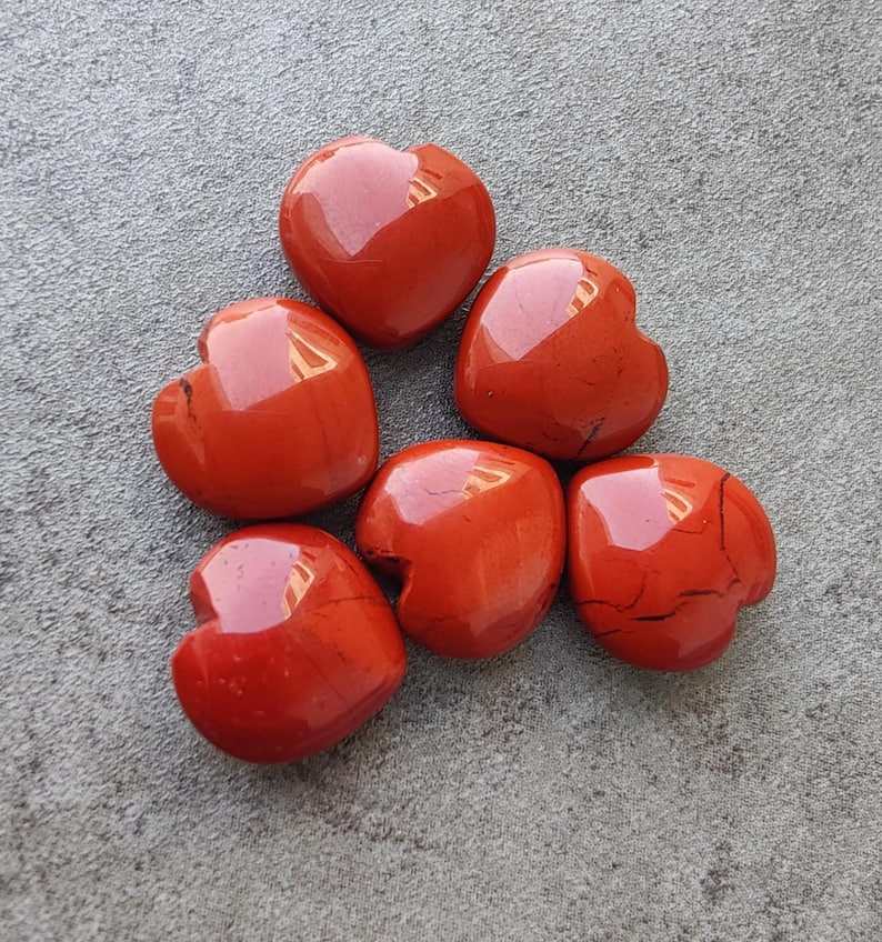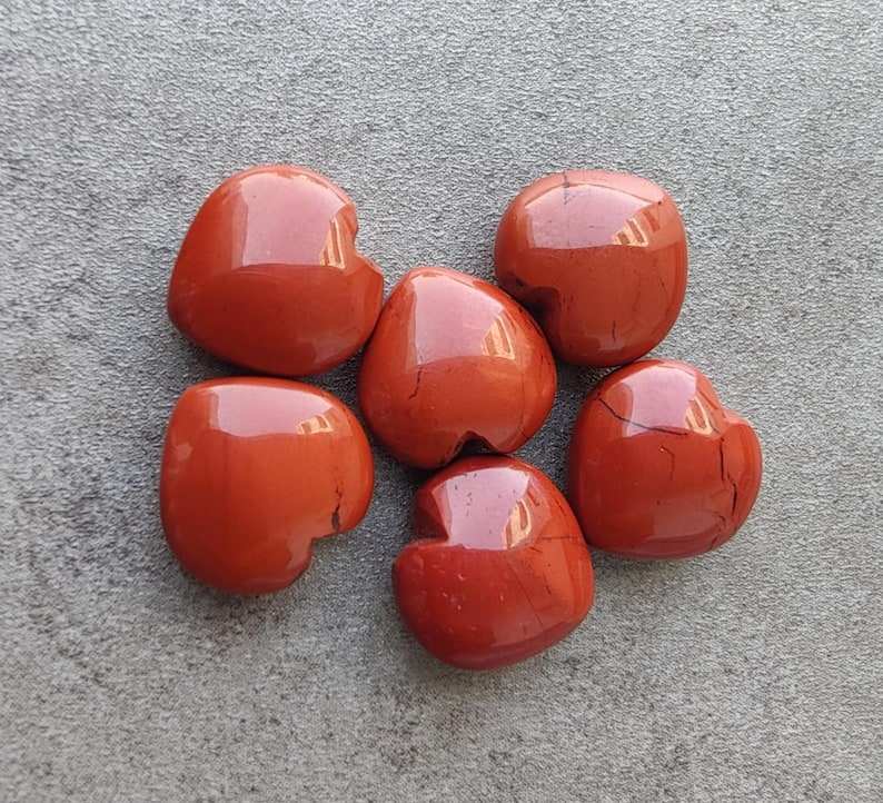 พลอยแจสเปอร์สีแดงธรรมชาติ รูปหัวใจ ทรงบริโอเลต คาโบชอง คุณภาพเกรดสำหรับทำเครื่องประดับ พลอยหลวม