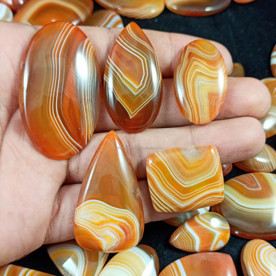 พลอยออนิกซ์สีแดงธรรมชาติทรงคาโบชองแบบหลวม ออนิกซ์สีแดงลายเส้นคุณภาพสูง รูปทรงวงรีแบนสำหรับทำเครื่องประดับเงิน