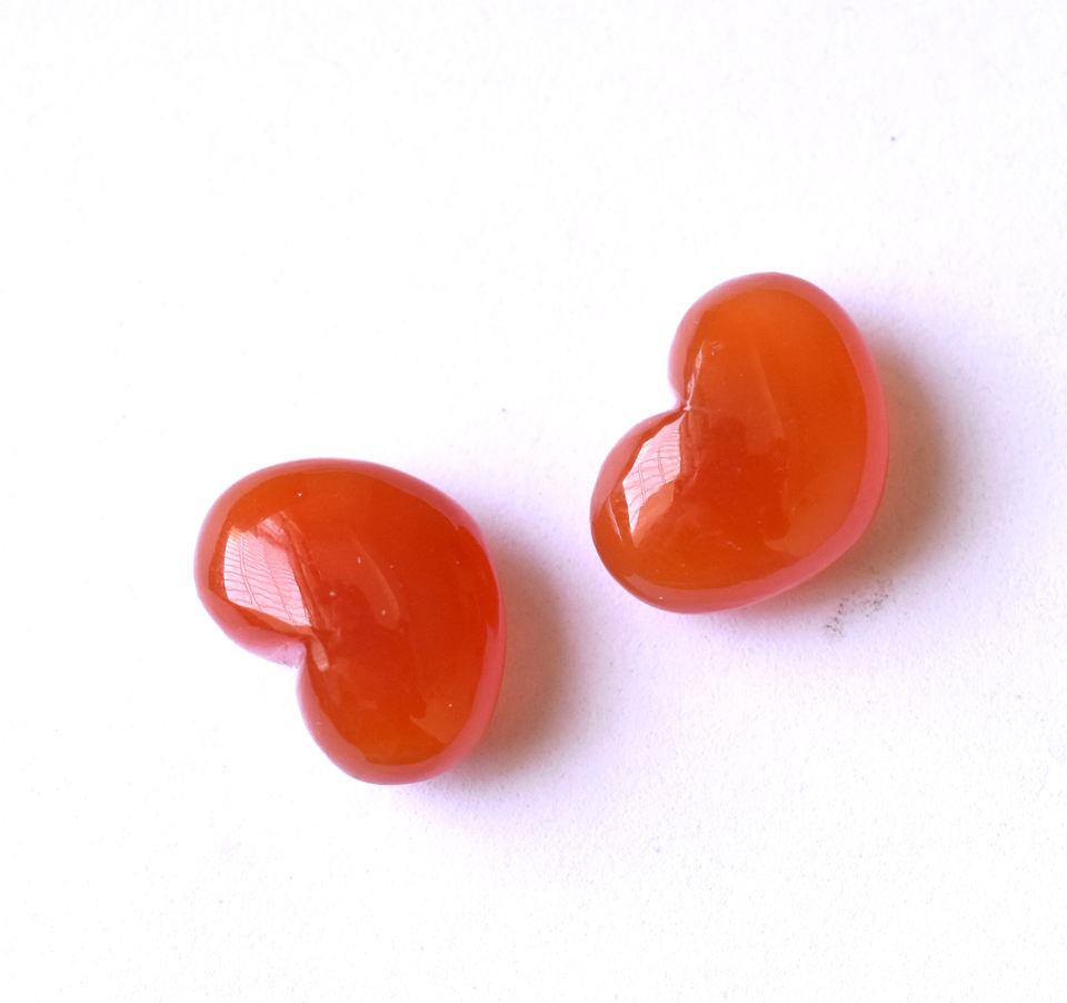 พลอย15X11X8ทรงหลวมคู่สำหรับต่างหูหินโมราสีแดงรูปหัวใจอัญมณีทรงหลวมสีแดงธรรมชาติ