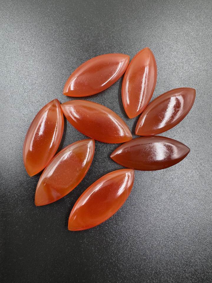 พลอยโมราแดงธรรมชาติอัญมณีทรงหลวมขนาด17x40มม. สำหรับทำเครื่องประดับรูปทรงมาร์คีส์เรียบ
