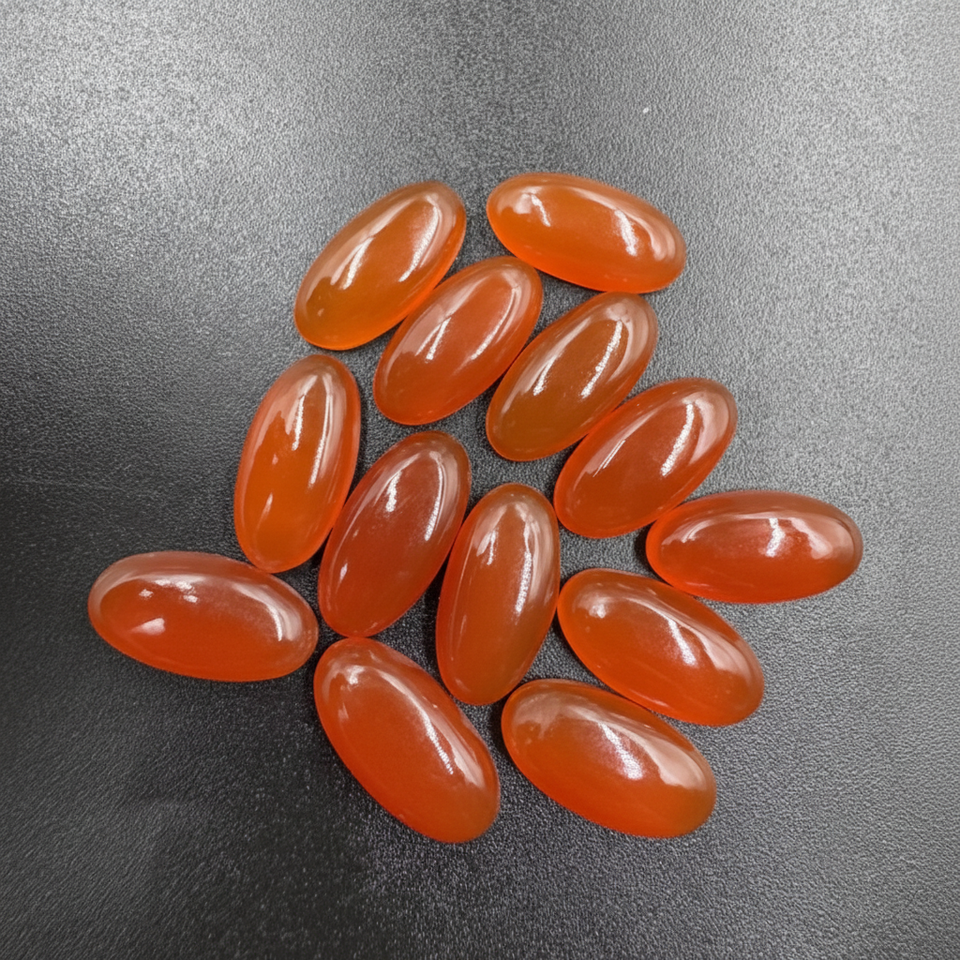 พลอยออนิกซ์สีแดงธรรมชาติทรงรีแบบเรียบคุณภาพสูงสำหรับทำเครื่องประดับพลอยขายส่งขนาด 10x20 มม. ผ่านการบำบัดธรรมชาติจากราชสถาน