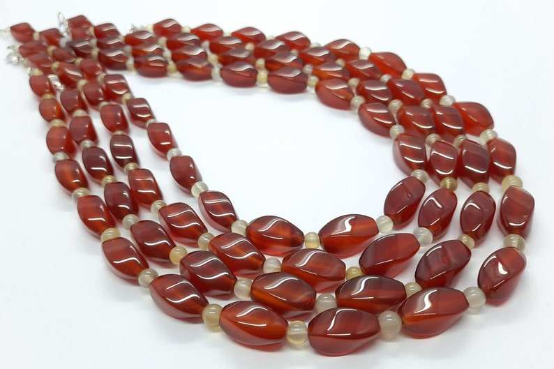 ลูกปัดหินโอนิกซ์สีแดง ทรงเหลี่ยมบิดเกลียวผิวเรียบ