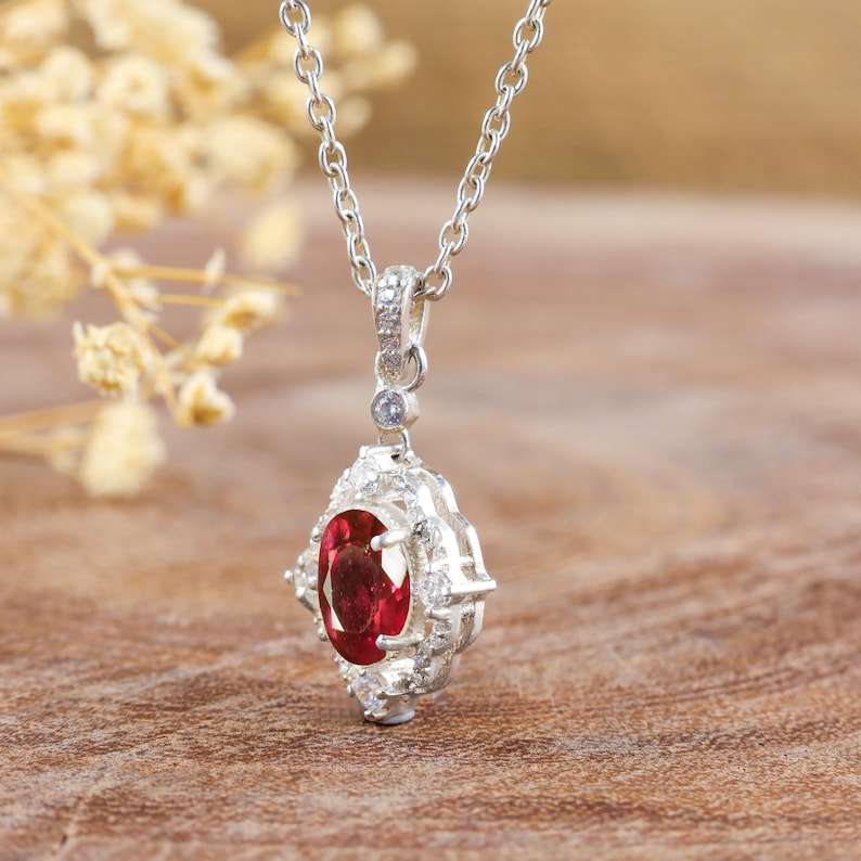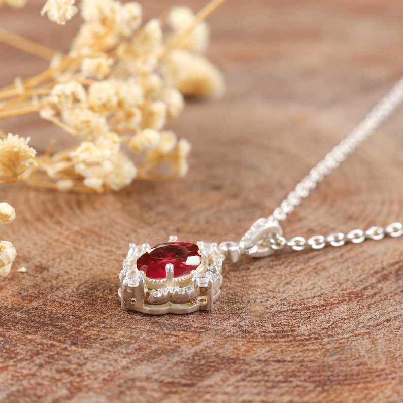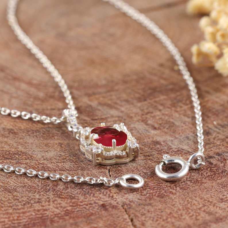 สร้อยคอจี้ทับทิมสีแดงธรรมชาติสำหรับผู้หญิง เครื่องประดับทับทิมสีชมพูแบบมินิมอล สง่างาม เงินสเตอร์ลิง สำหรับงานหมั้นหรือวันครบรอบ