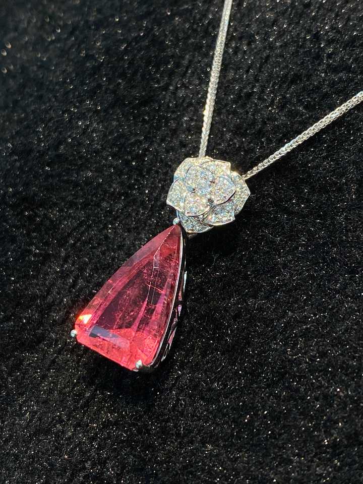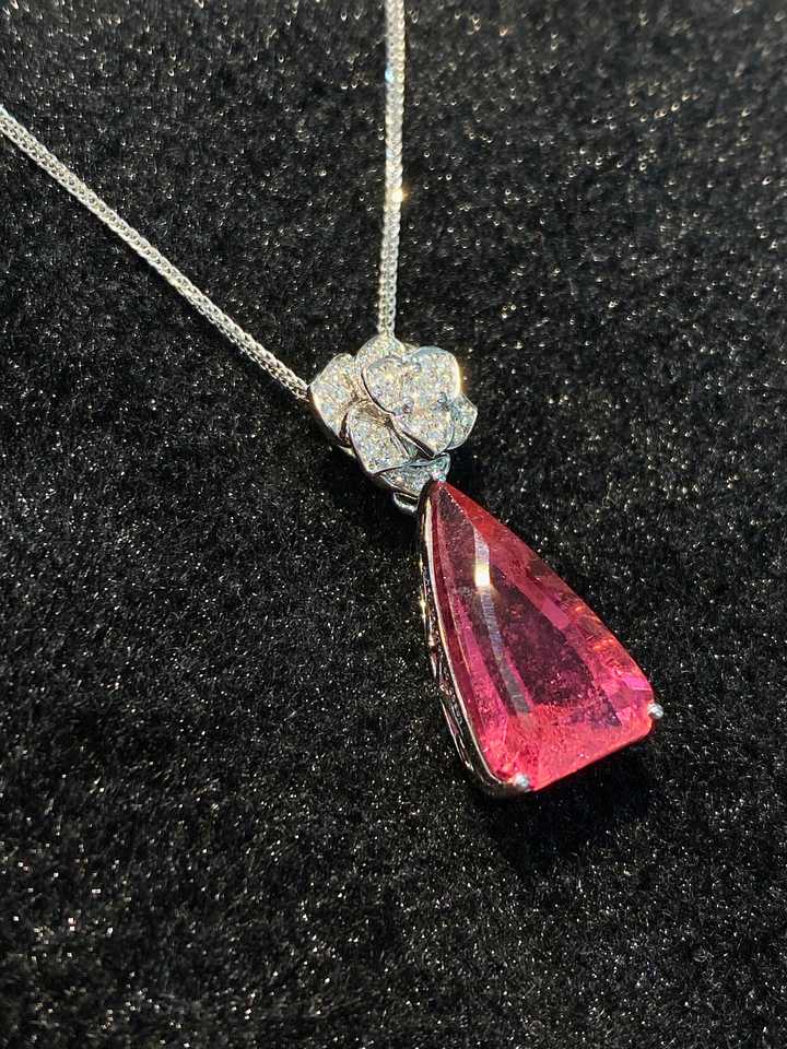 จี้ทัวร์มาลีนสีแดงธรรมชาติ 6.67 กะรัต ประดับเพชรซิร์คอนเม็ดเล็ก สร้อยคอพลอยประณีต รับรองโดย IGI เงินแท้ 925 ของขวัญแต่งงาน