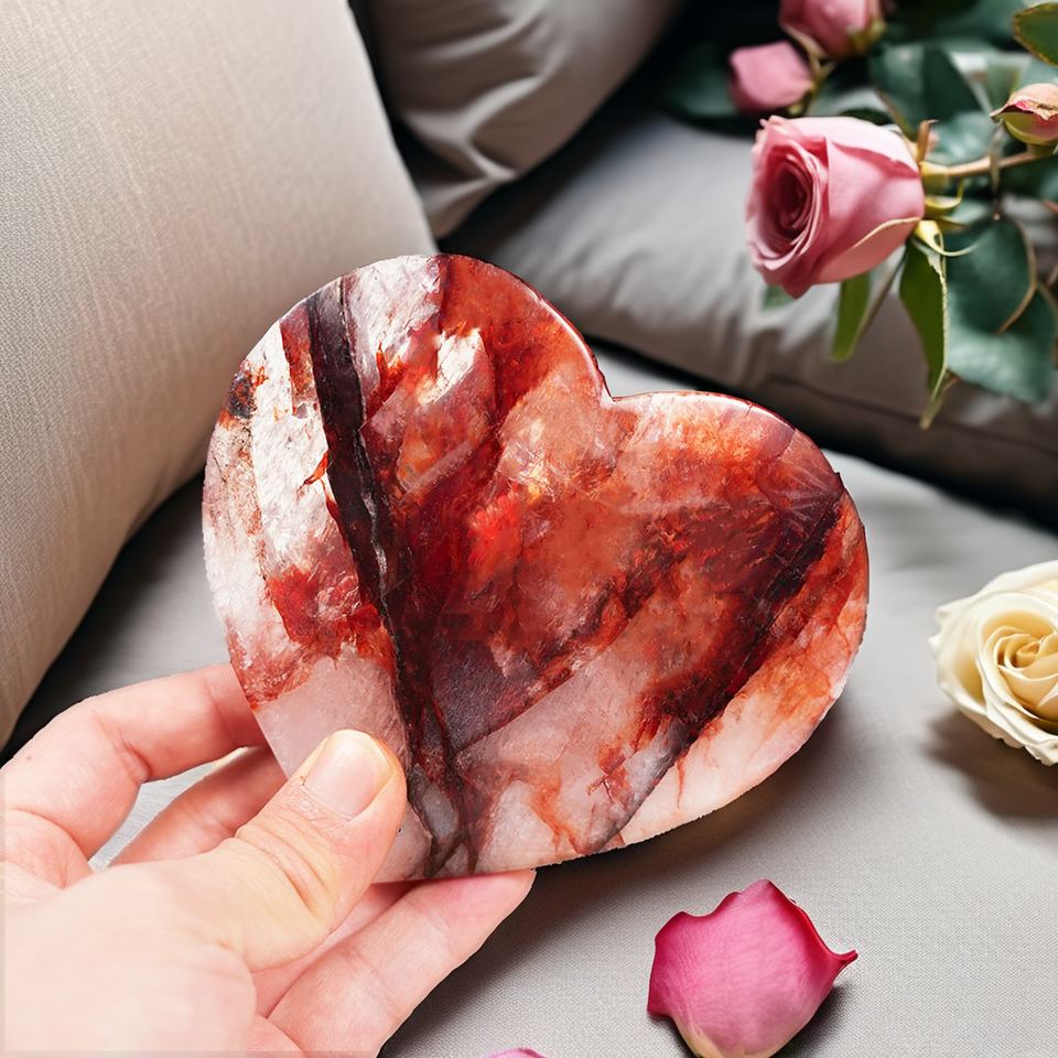 หินปาล์มรูปหัวใจ ขัดเงา คริสตัลบำบัด แกะสลักด้วยมือ DIY อัญมณีแห่งความรัก เรกิ สมาธิ ตกแต่งบ้าน สำนักงาน โต๊ะทำงาน