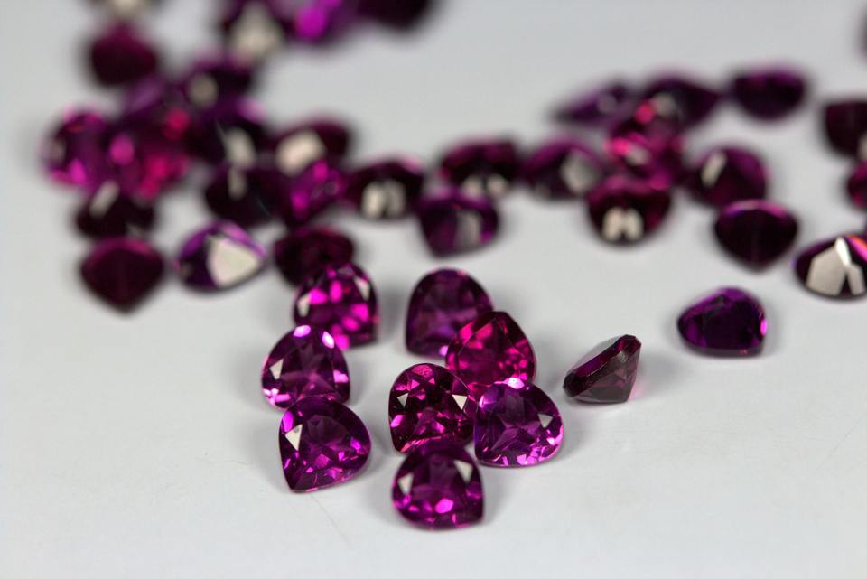 อัญมณีรูปหัวใจเจียระไนแบบโรโดไลต์ธรรมชาติ