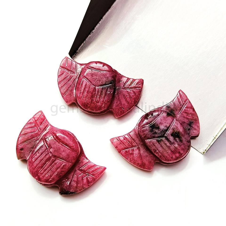 ลูกปัดแกะสลักพลอยโรโดไนท์ลูกปัดพลอยรูปแมลงปีกแข็งแกะสลักด้วยมือสำหรับทำเครื่องประดับรูปปั้นขนาดเล็ก