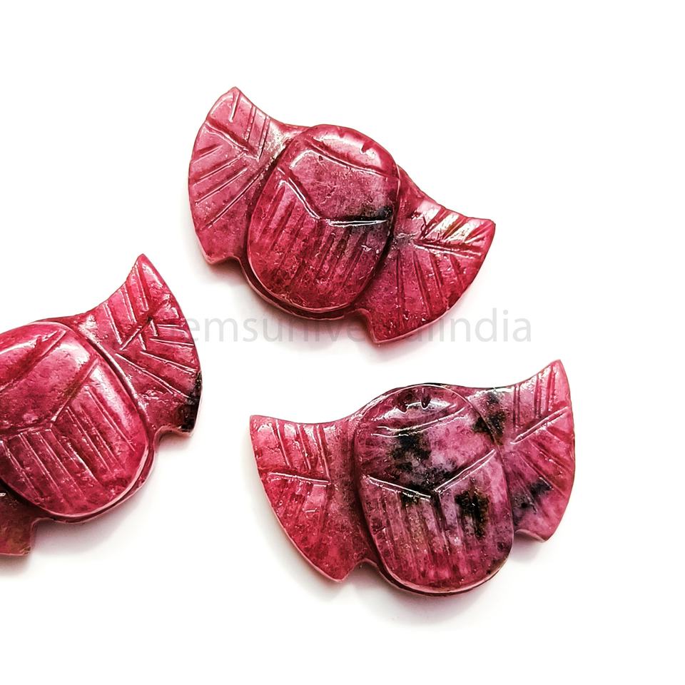 Natural Rhodonite Scarab With Wings Carved Gemstone