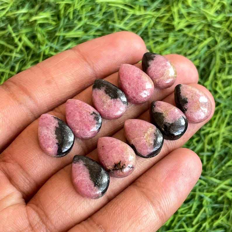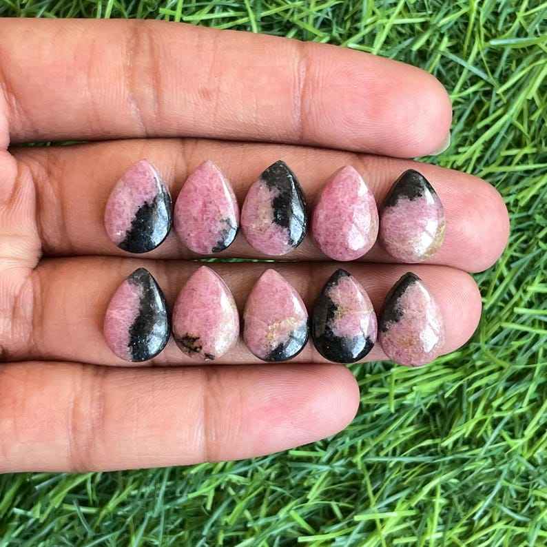 พลอยอัญมณีทรงหลังเบี้ยทรงลูกแพร์โรโดไนต์10X14มม. 10ชิ้นสำหรับทำเครื่องประดับ