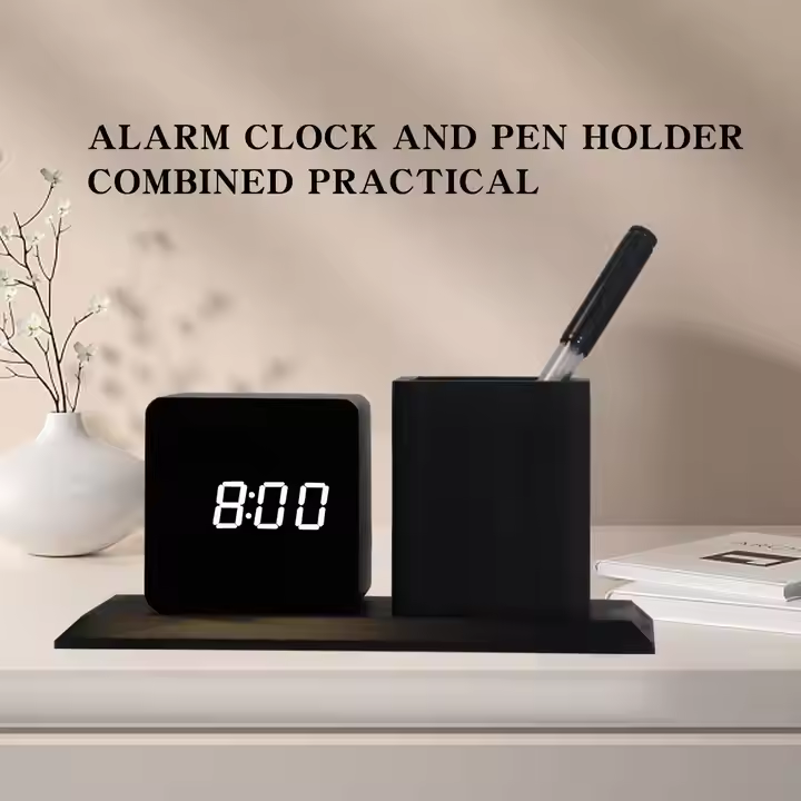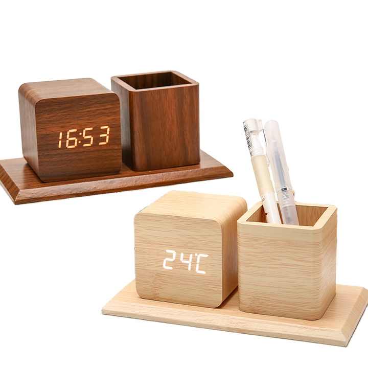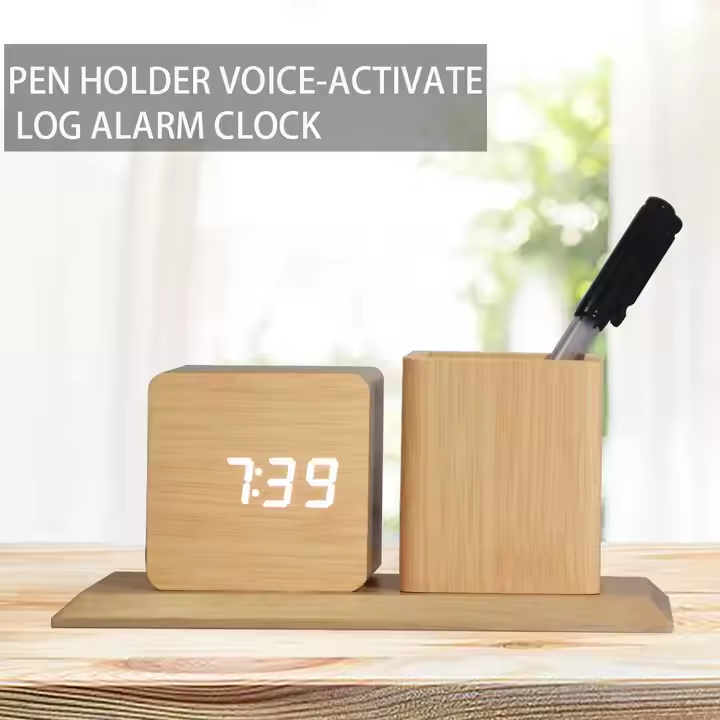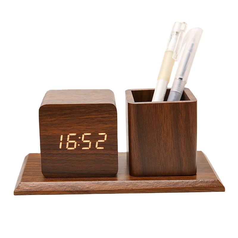 ชุดนาฬิกาตั้งโต๊ะไม้เนื้อแข็ง Natural Rhythm พร้อมที่ใส่ปากกา บริการผลิตที่เป็นมิตรต่อสิ่งแวดล้อม จัดระเบียบเวลาอย่างสดชื่น