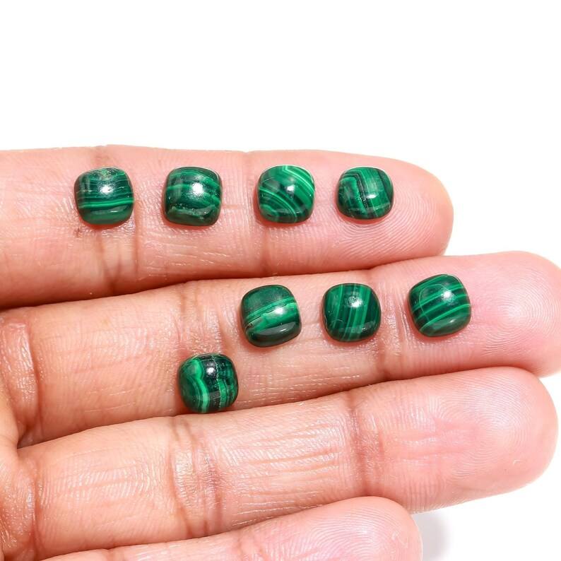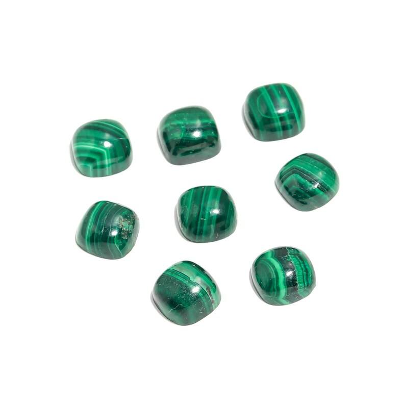 มาลาไคต์สีเขียวธรรมชาติทรงคุชชั่นเจียระไนแบบคาโบชอง สำหรับทำเครื่องประดับ คุณภาพสูง รับรองโดยบุคคลที่สาม ขนาด 7 มม.