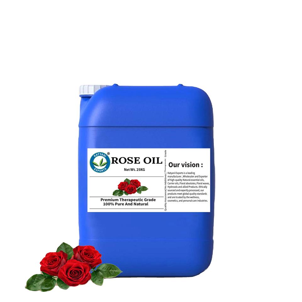 น้ำมันกุหลาบธรรมชาติ 100% บริสุทธิ์ กลั่นด้วยไอน้ำ น้ำมันหอมระเหยดอกกุหลาบดามัสกีน่า - สำหรับผลิตภัณฑ์ดูแลส่วนบุคคล - โดย Katyani Exports