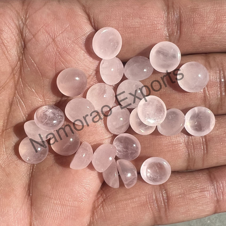 โรสควอตซ์ธรรมชาติ 5x5 มม. ทรงกลมแบบคาโบชอง มีทุกขนาด หลังแบน สำหรับทำเครื่องประดับ พลอยหลวม